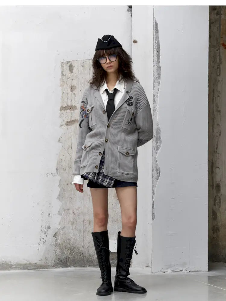 Graffiti-Print Knit Cardigan Sweater【s0000014202】