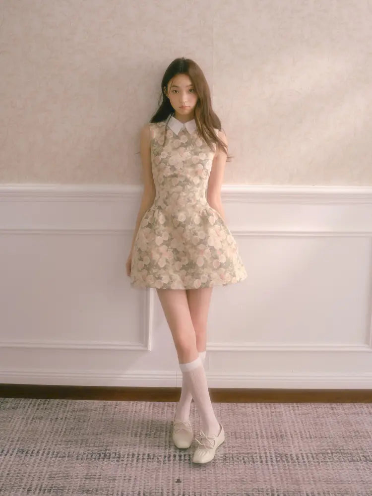 Rose Oil Painting Shirt Collar Sleeveless Dress【s0000014340】