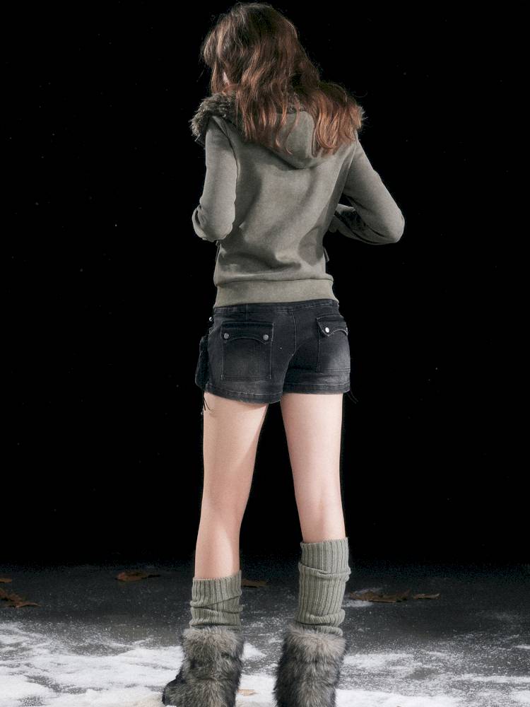 Vintage-Washed Slightly Stretch Denim Shorts【s0000014427】