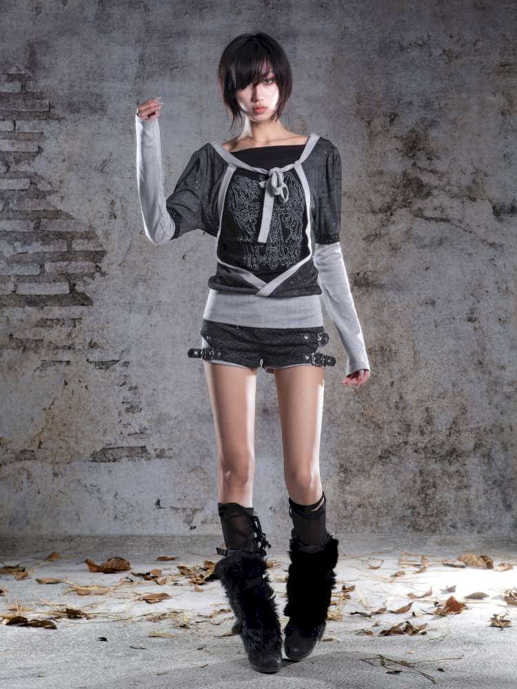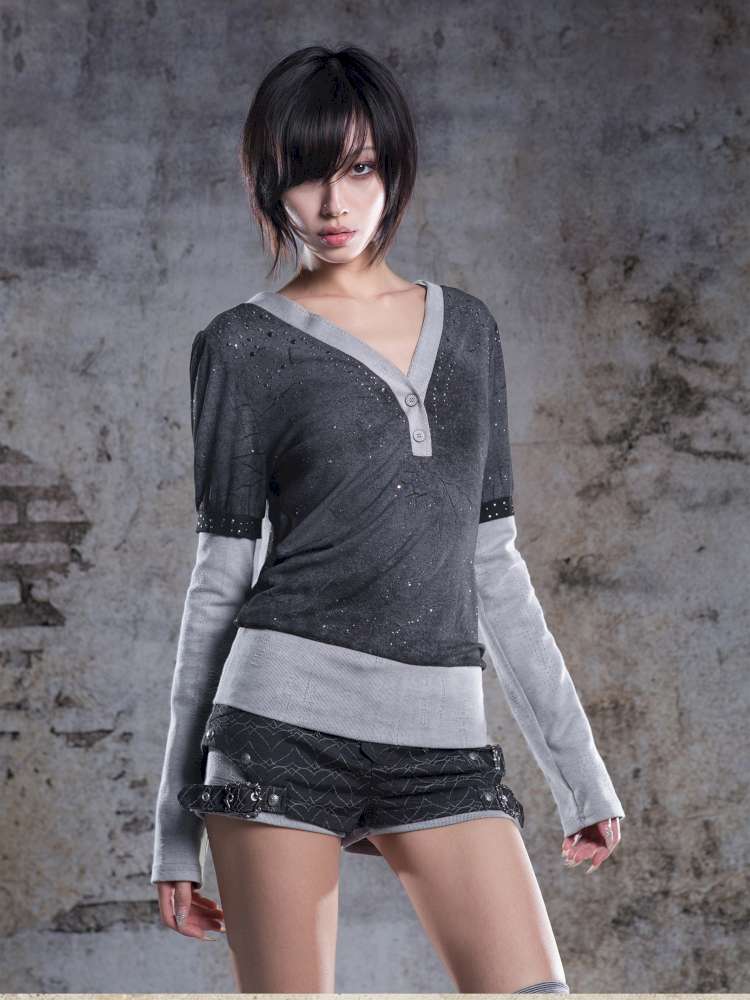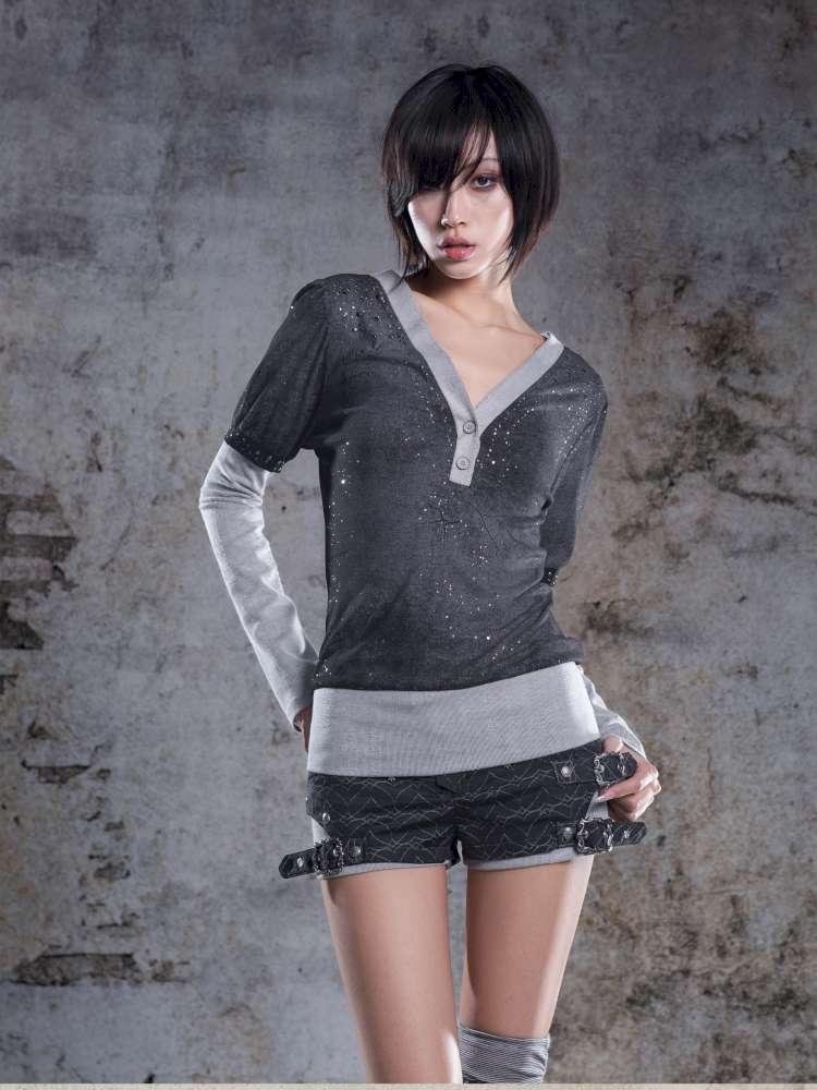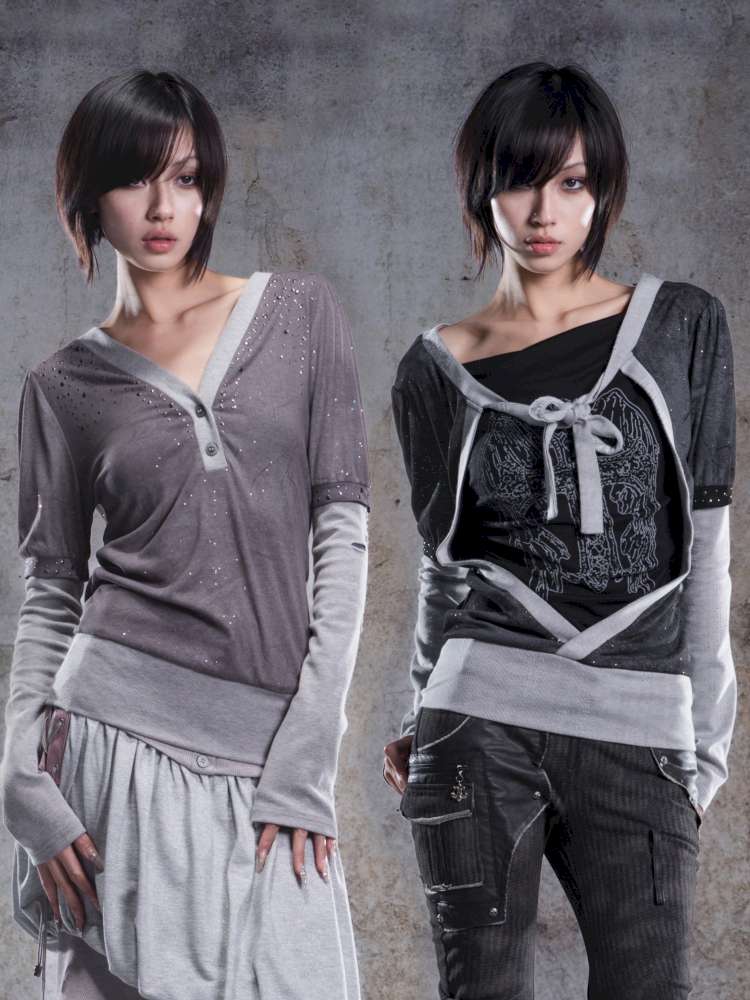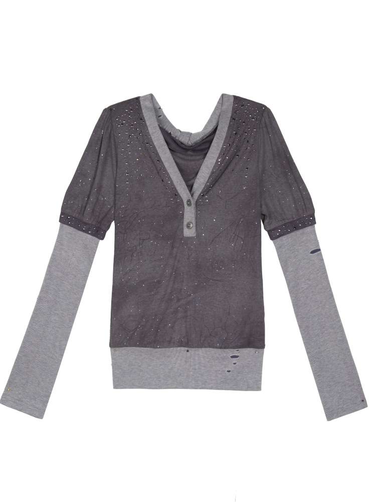 High-Stretch Printed Rhinestone Knit Top【s0000014490】