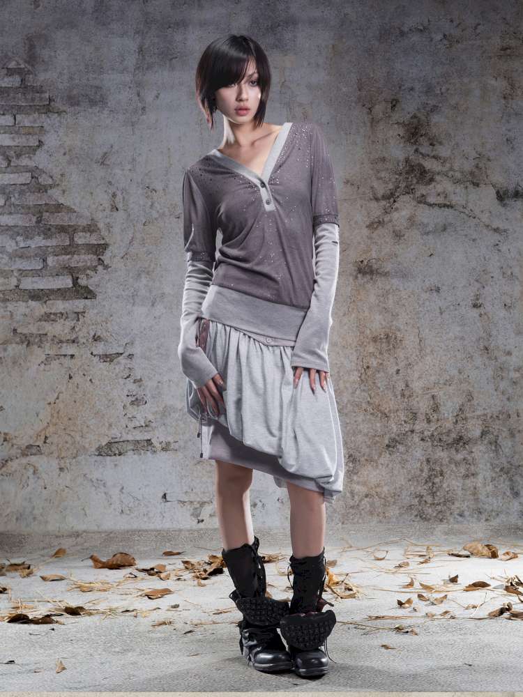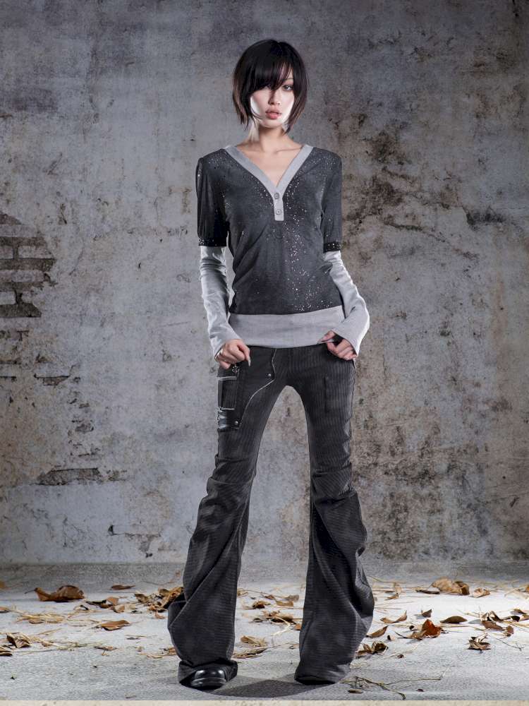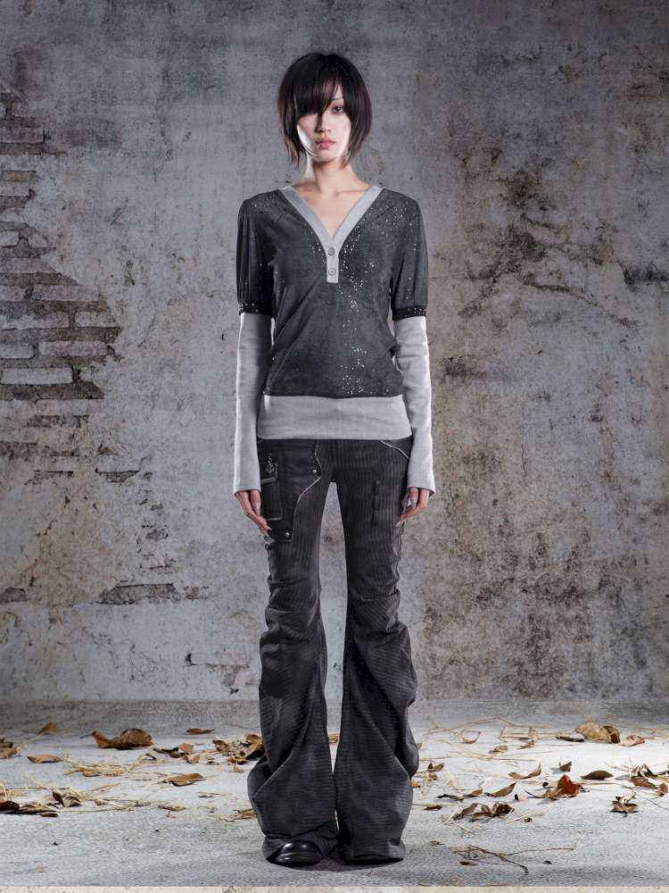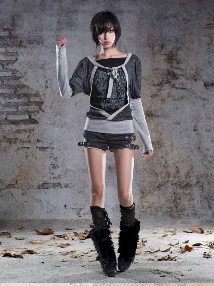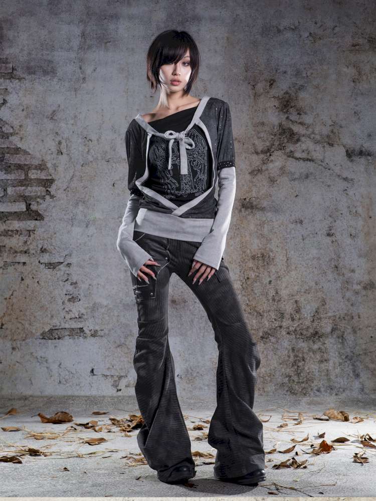 High-Stretch Printed Rhinestone Knit Top【s0000014490】