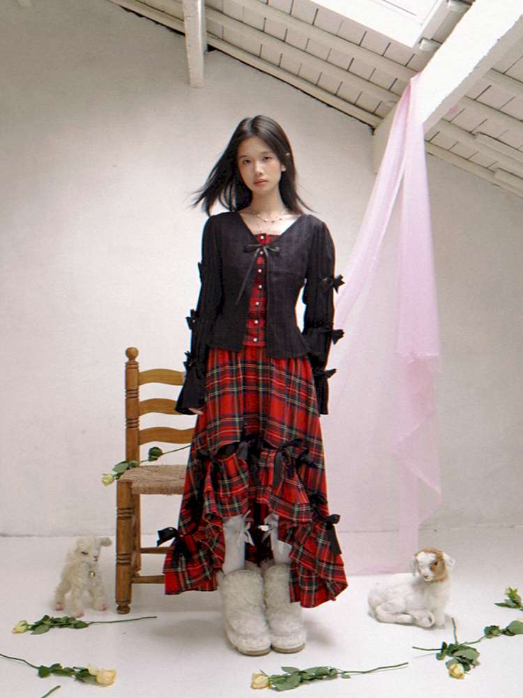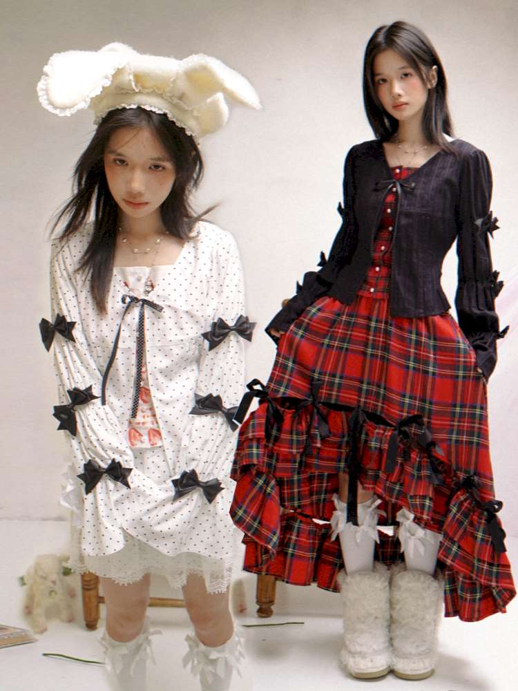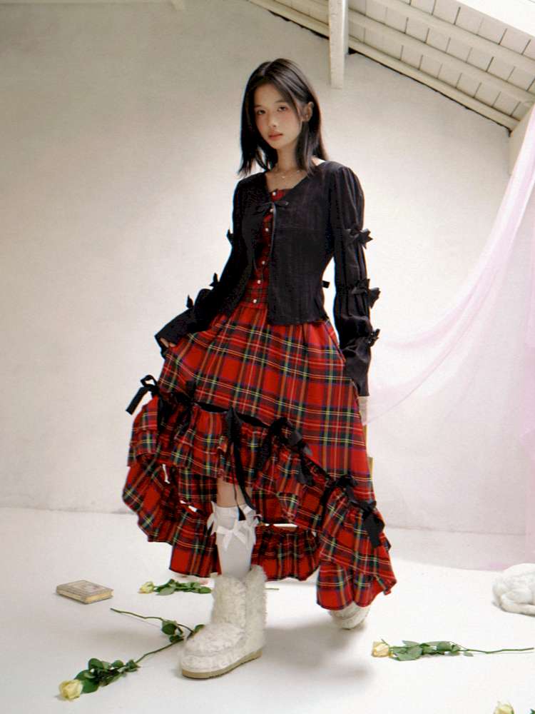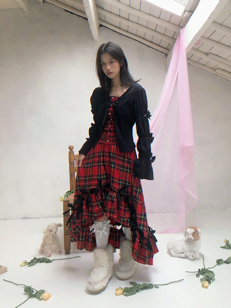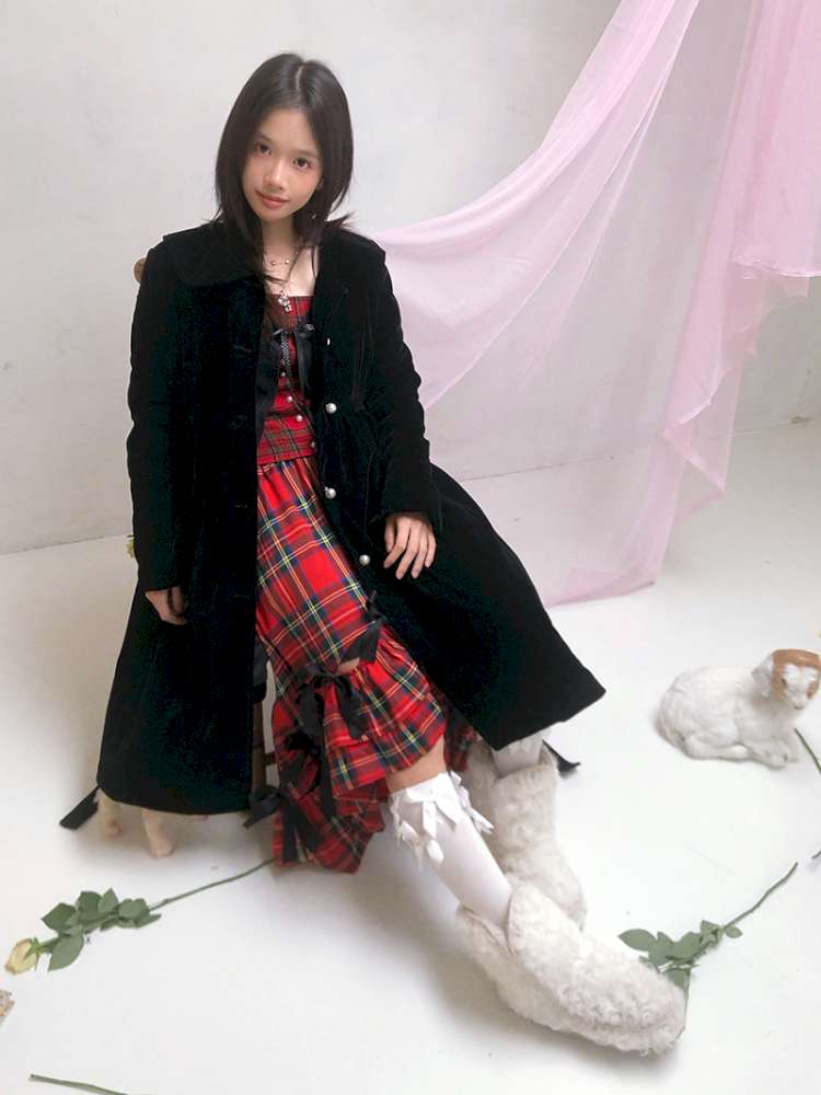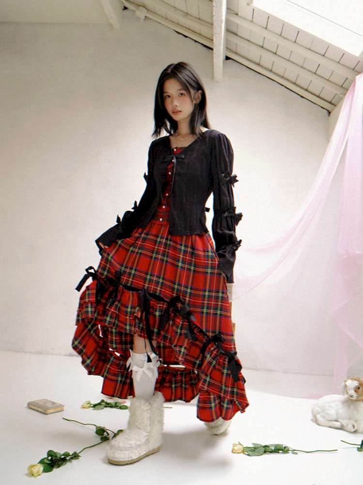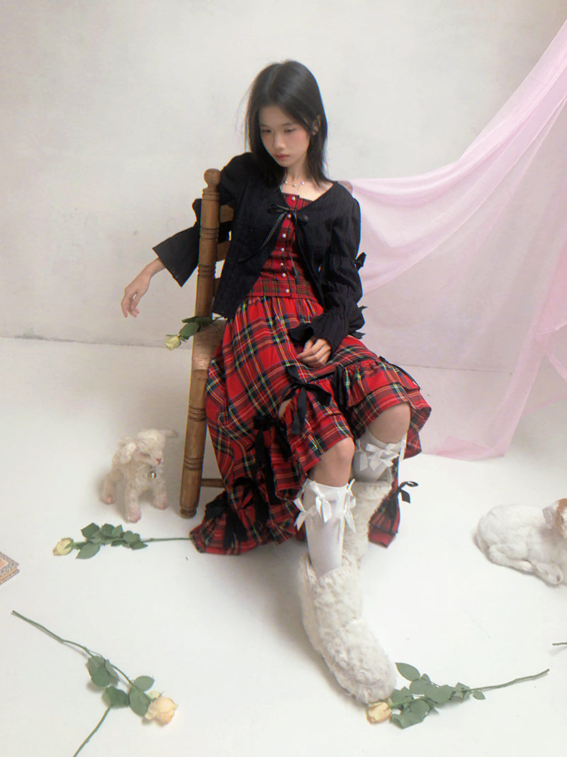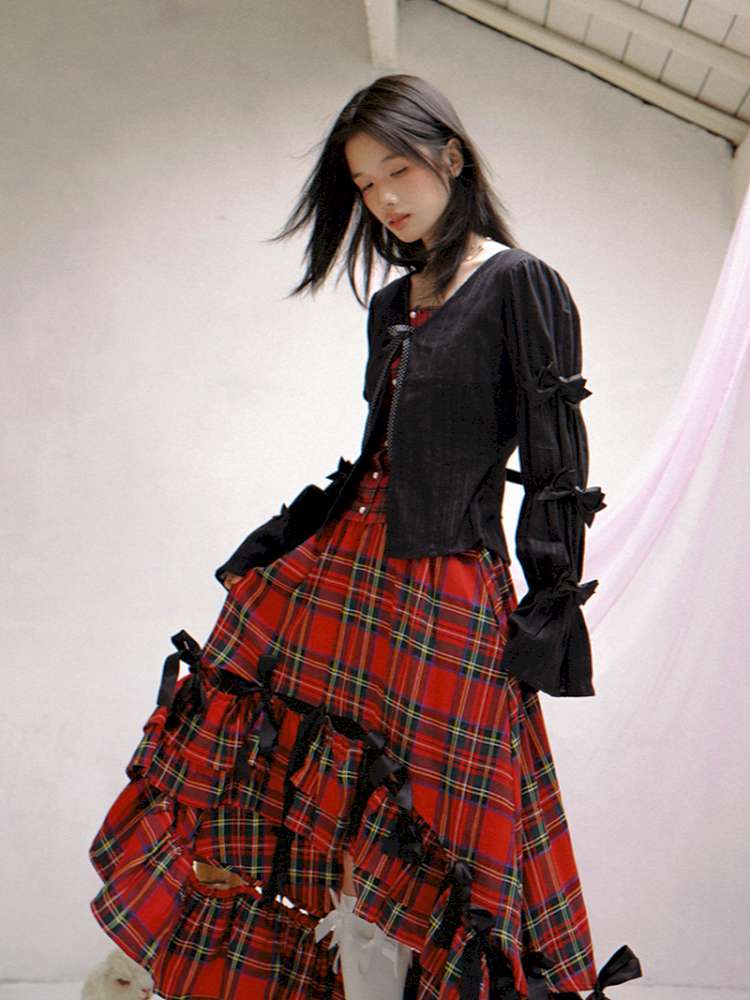- Matière : Tissu à pois blancs : Polyester 100% / Plaid rouge : Coton 100% / Tissu noir : Coton 100%