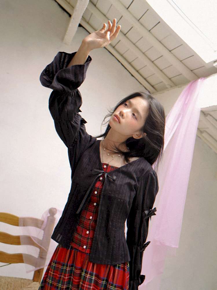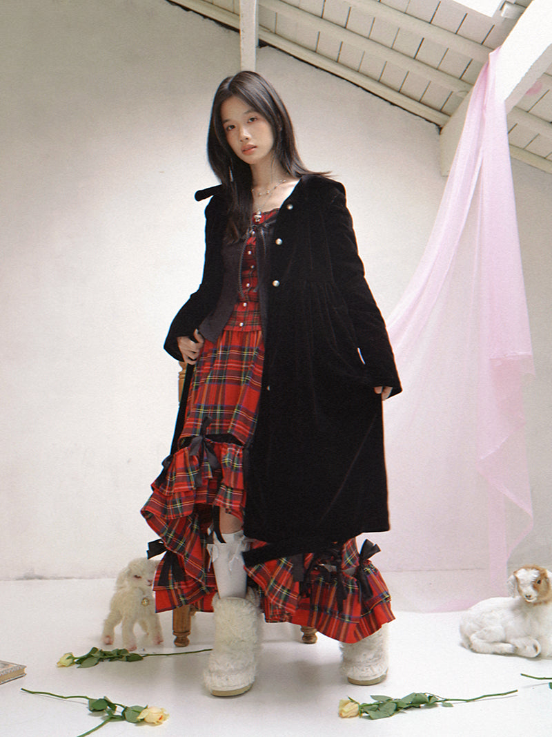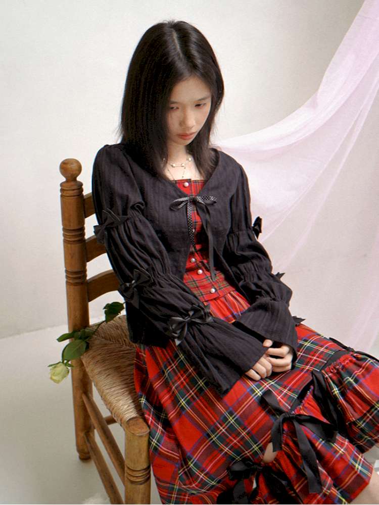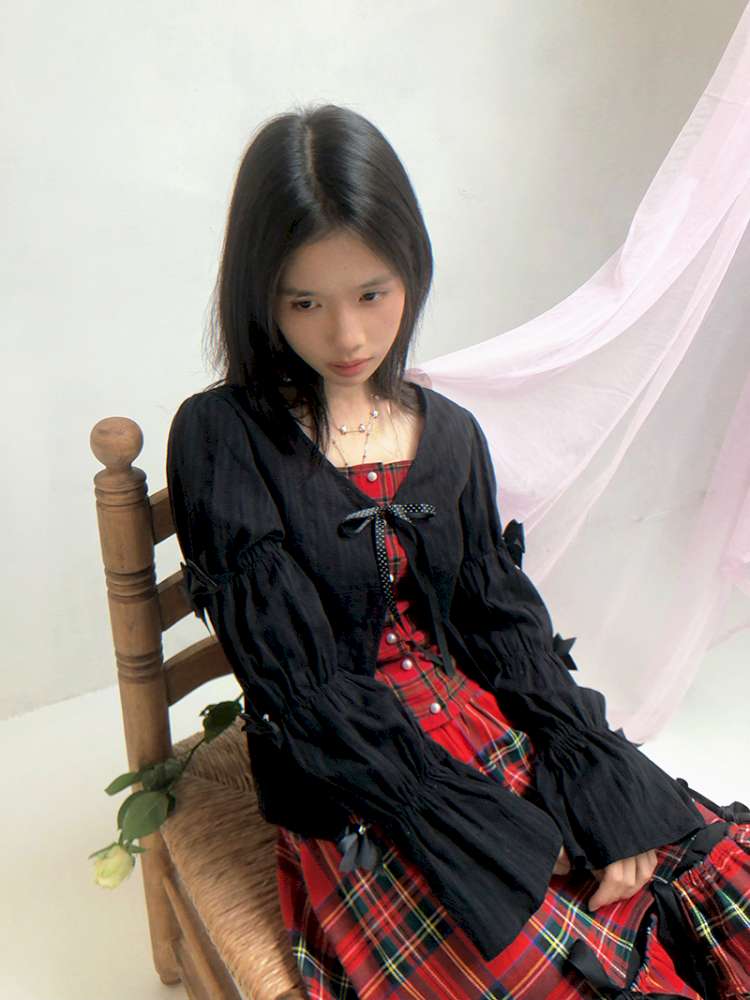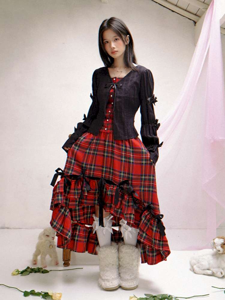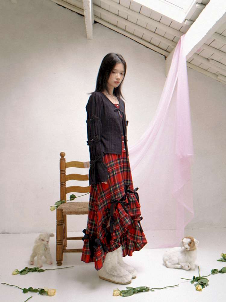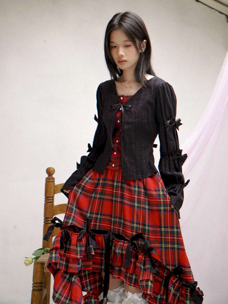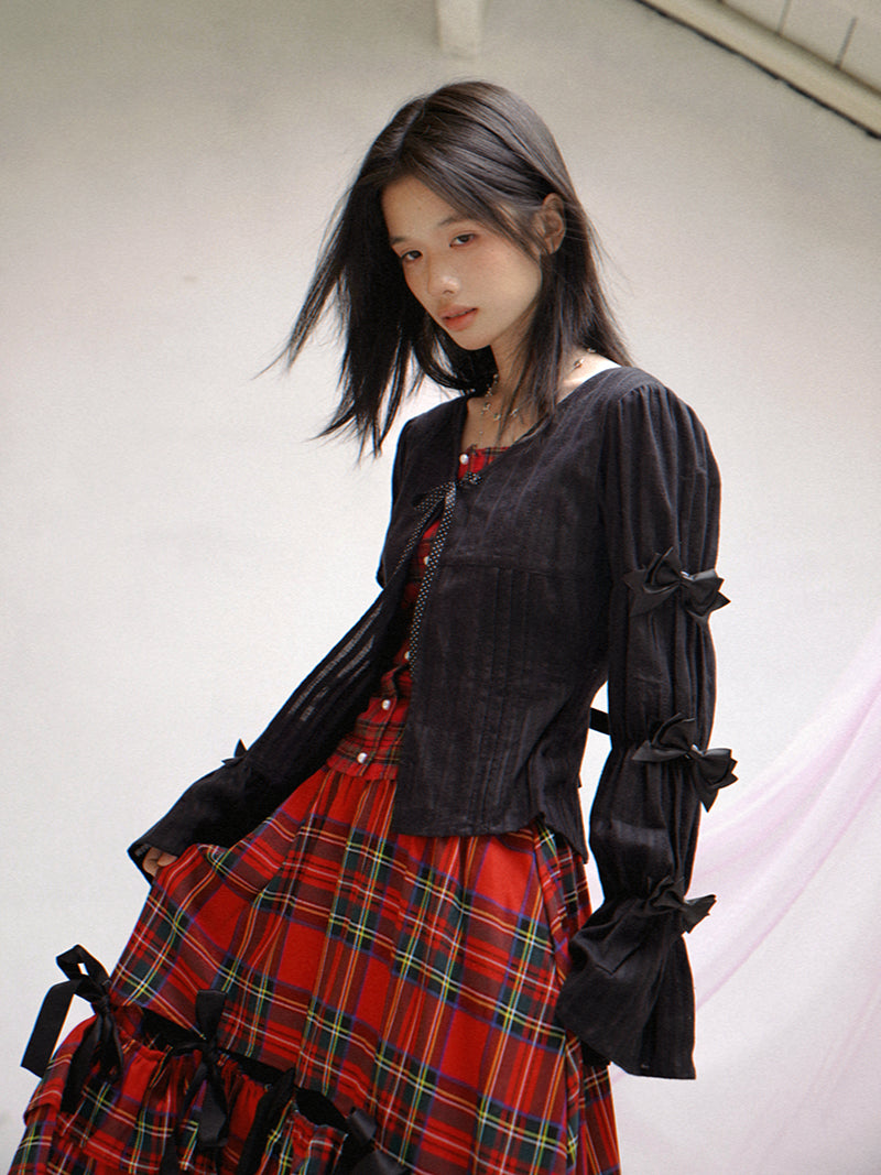 - Matière : Tissu à pois blancs : Polyester 100% / Plaid rouge : Coton 100% / Tissu noir : Coton 100%