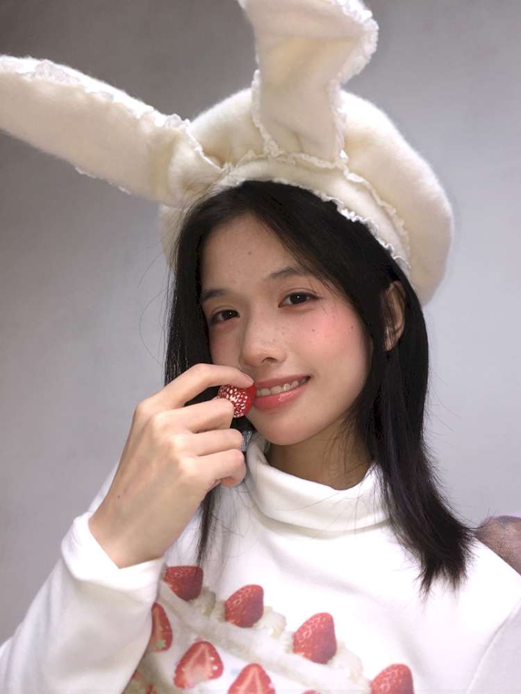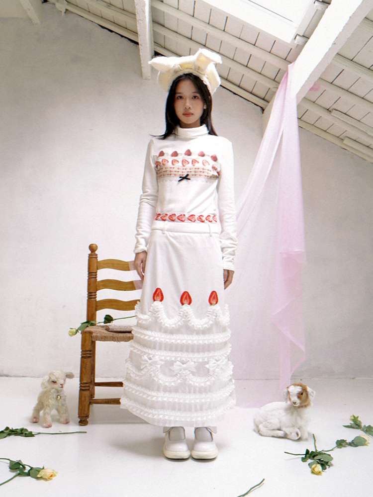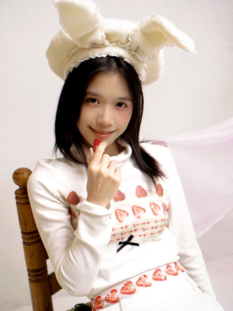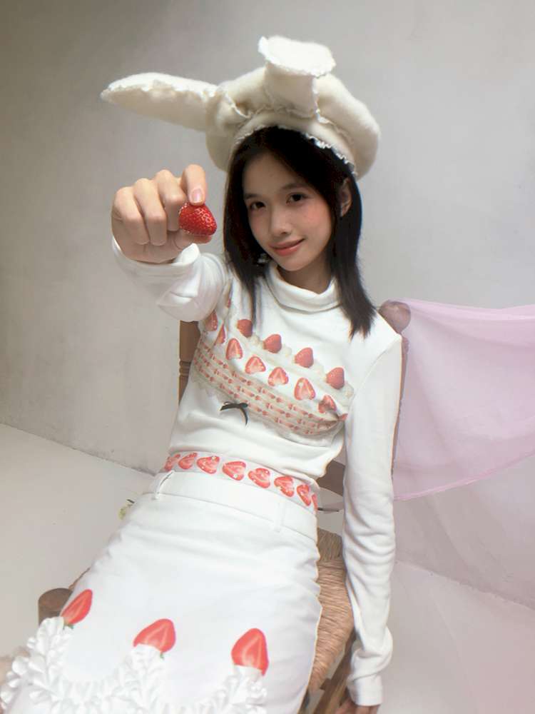 Strawberry Cake Print High-Neck T-Shirt【s0000014530】