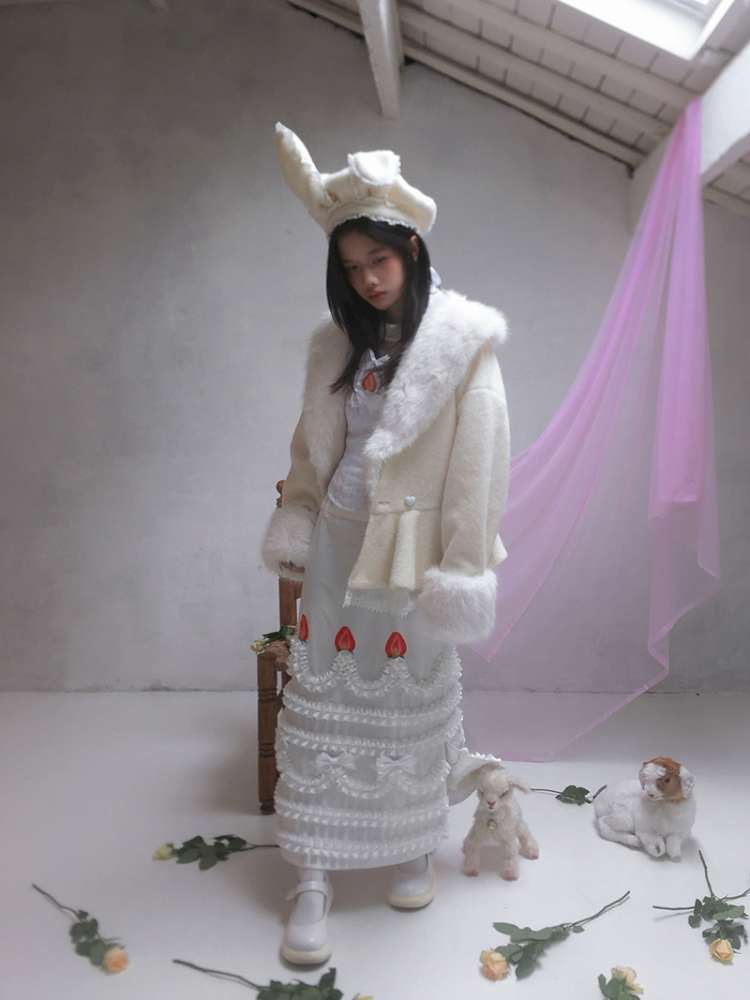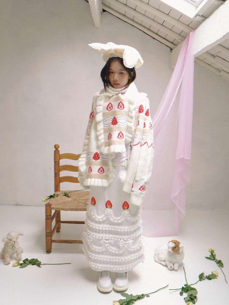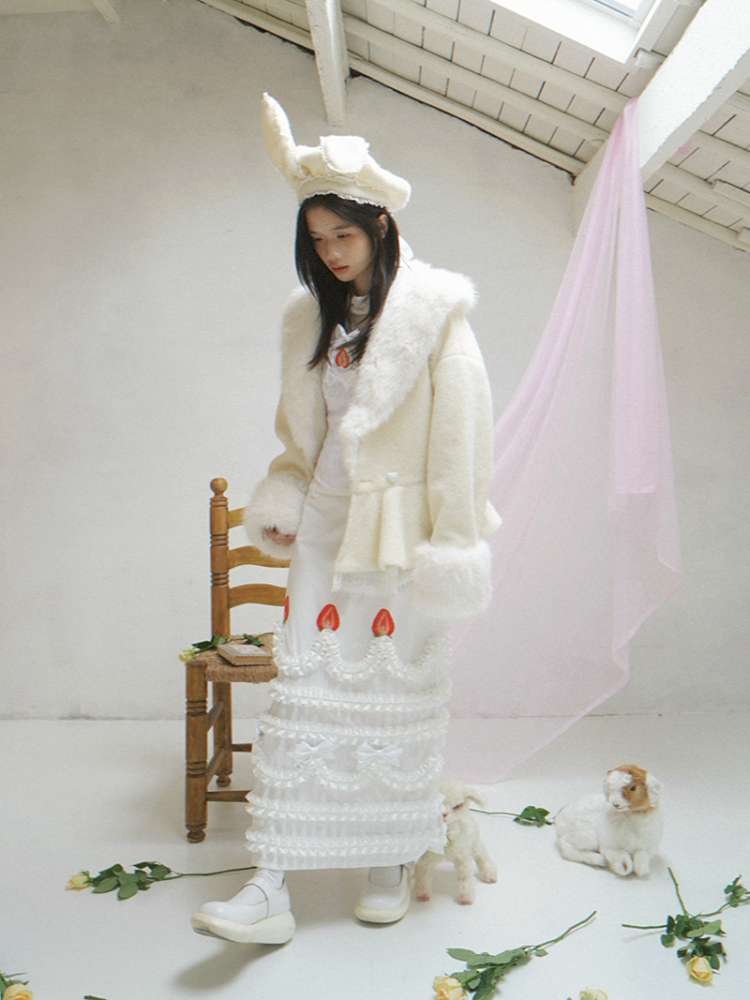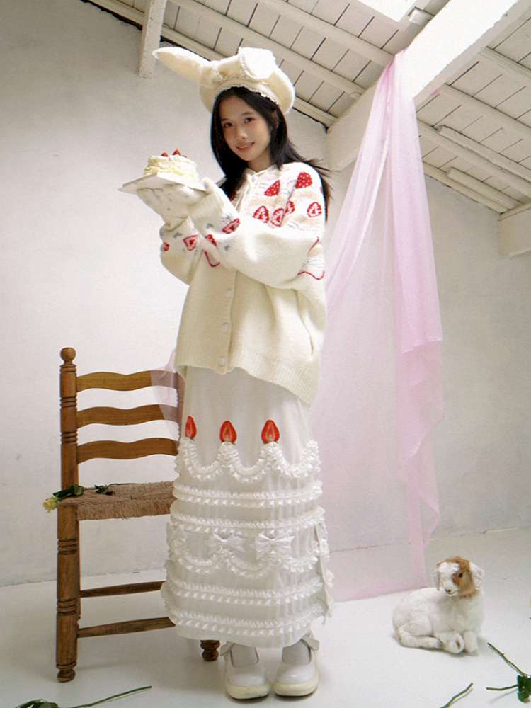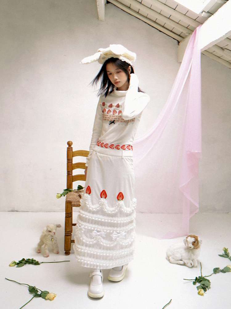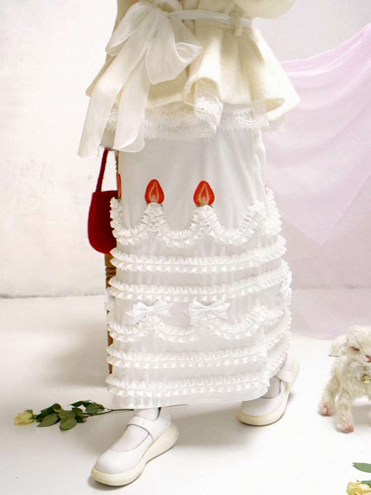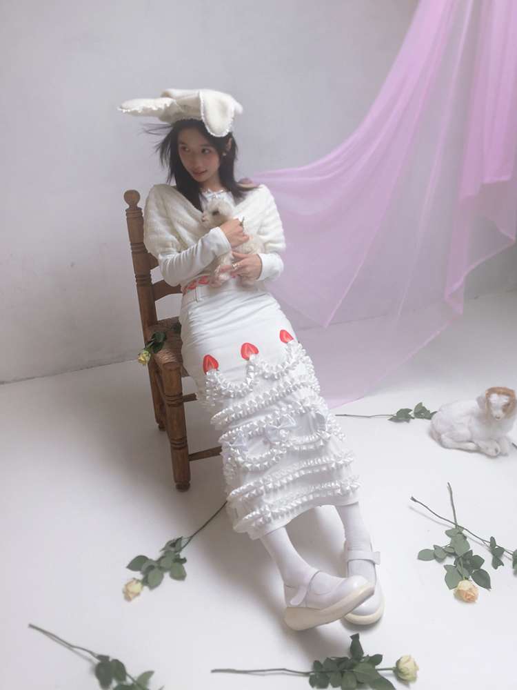 Cream Strawberry Cake Print Pencil Skirt【s0000014531】