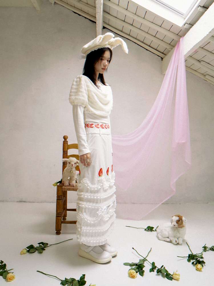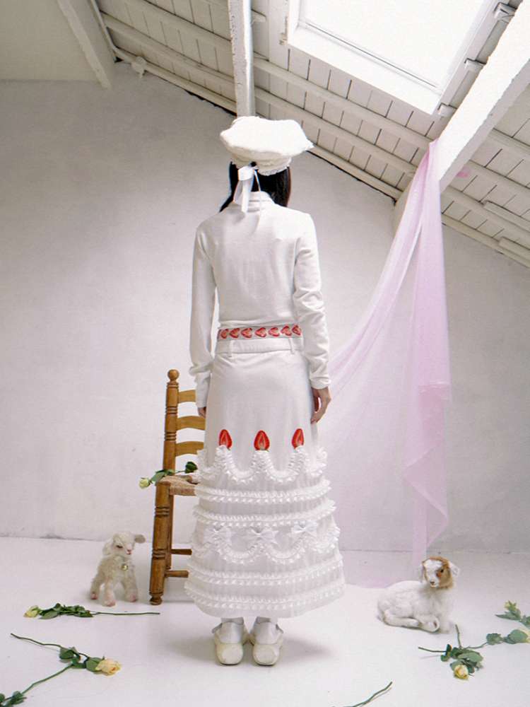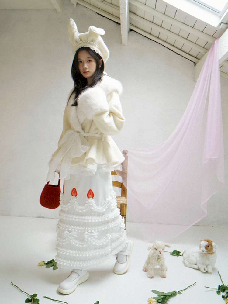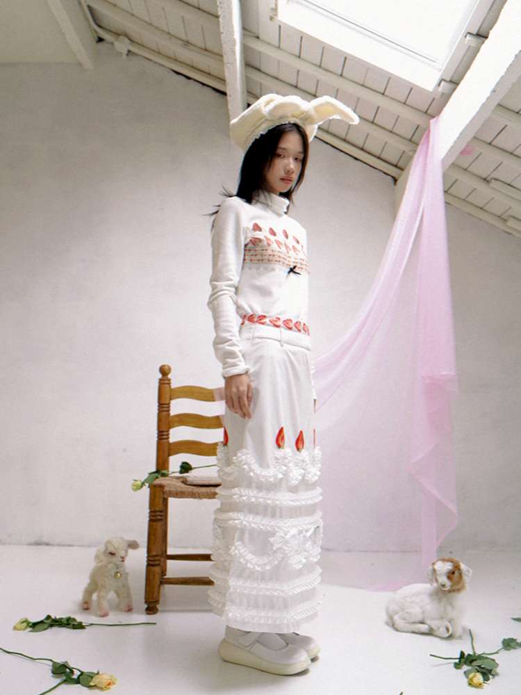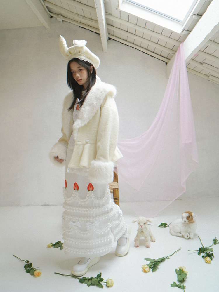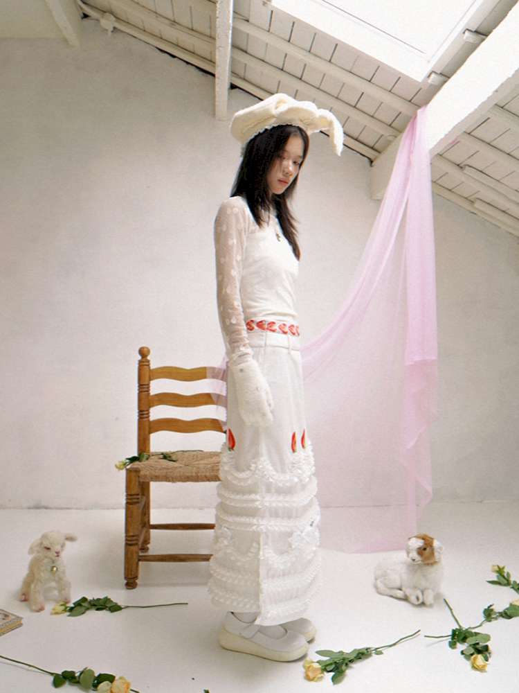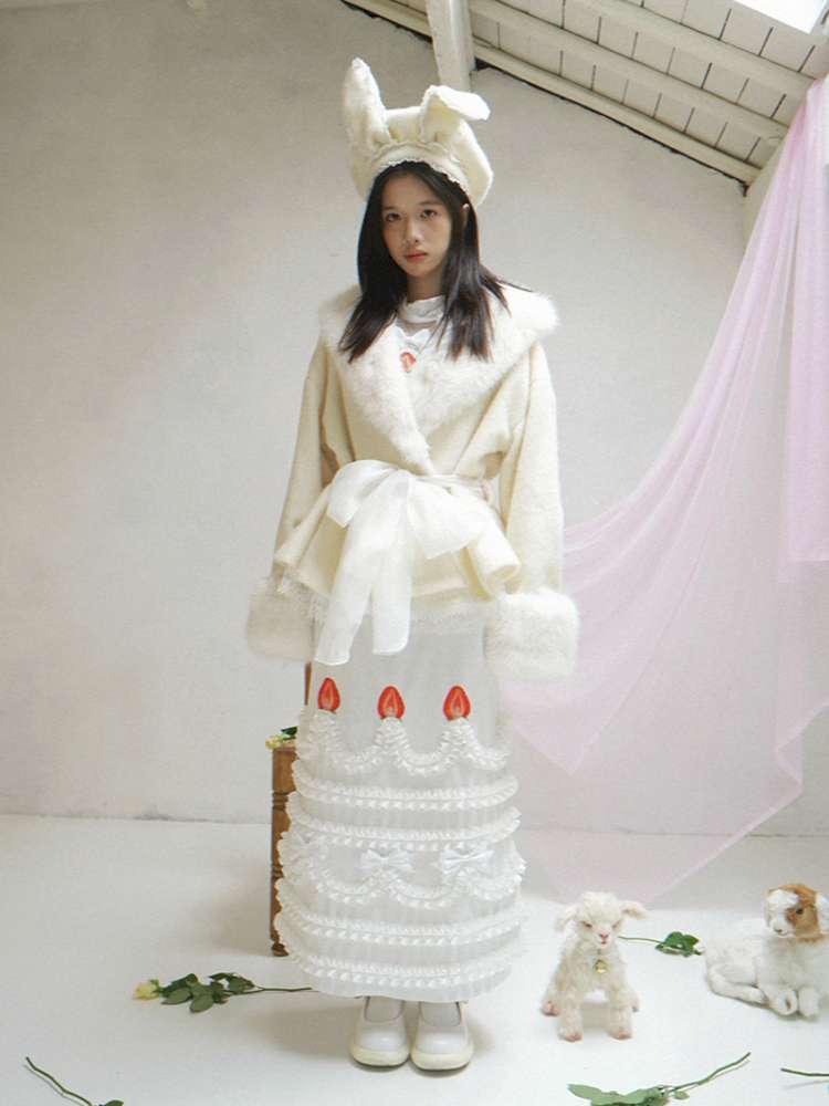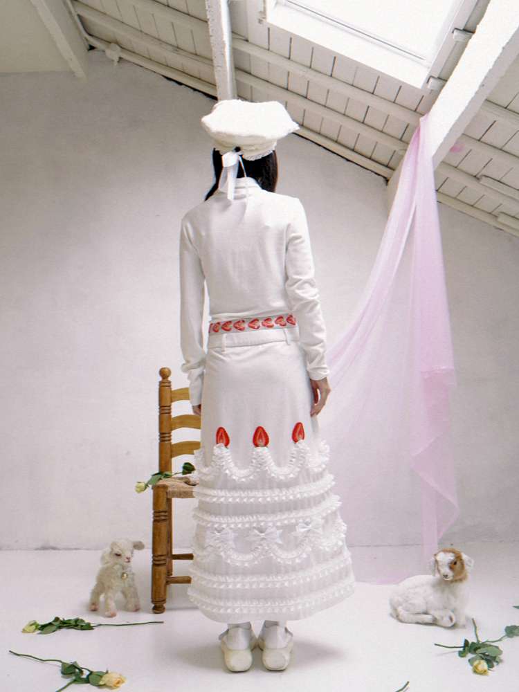 Cream Strawberry Cake Print Pencil Skirt【s0000014531】