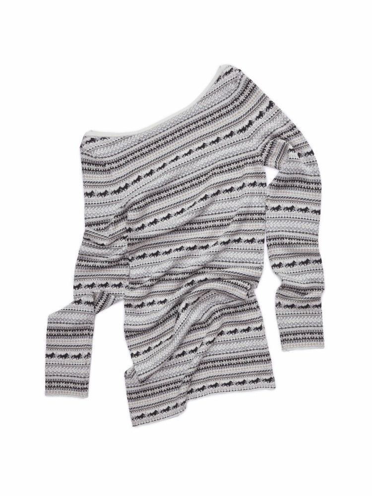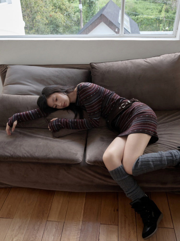 Fair Isle Fine Woven Jacquard Slanted Shoulder Neckline Dress Slim Waist Hip Skirt【s0000014600】
