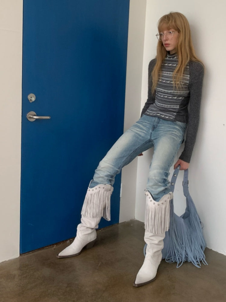 Fair Island Basic High Neck Contrast Panel Knit Slim Base Top【s0000014602】