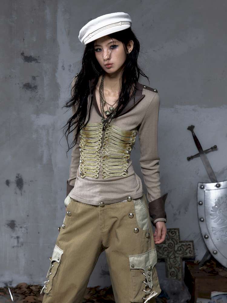 Vintage Punk Knight Slim Fit Shirt【s0000014652】