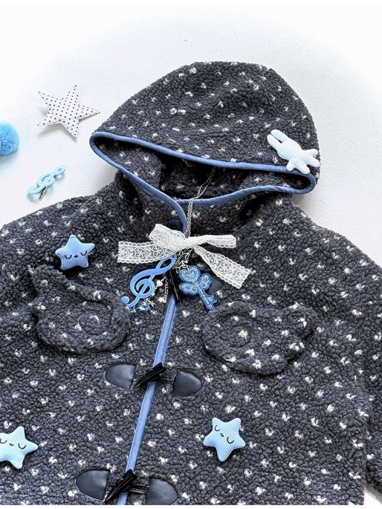 Old-fashioned Gray Horn Buckle Hooded Jacket【s0000014699】