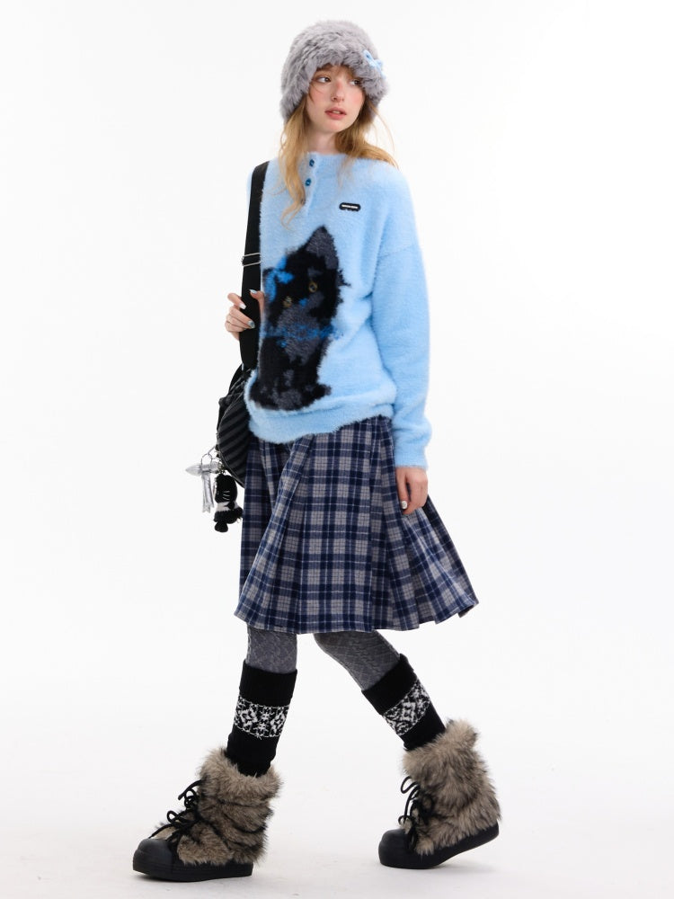 American Retro Design Cat Print Soft Waxy Lazy Sweater【s0000014758】
