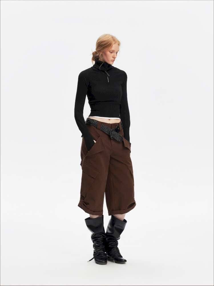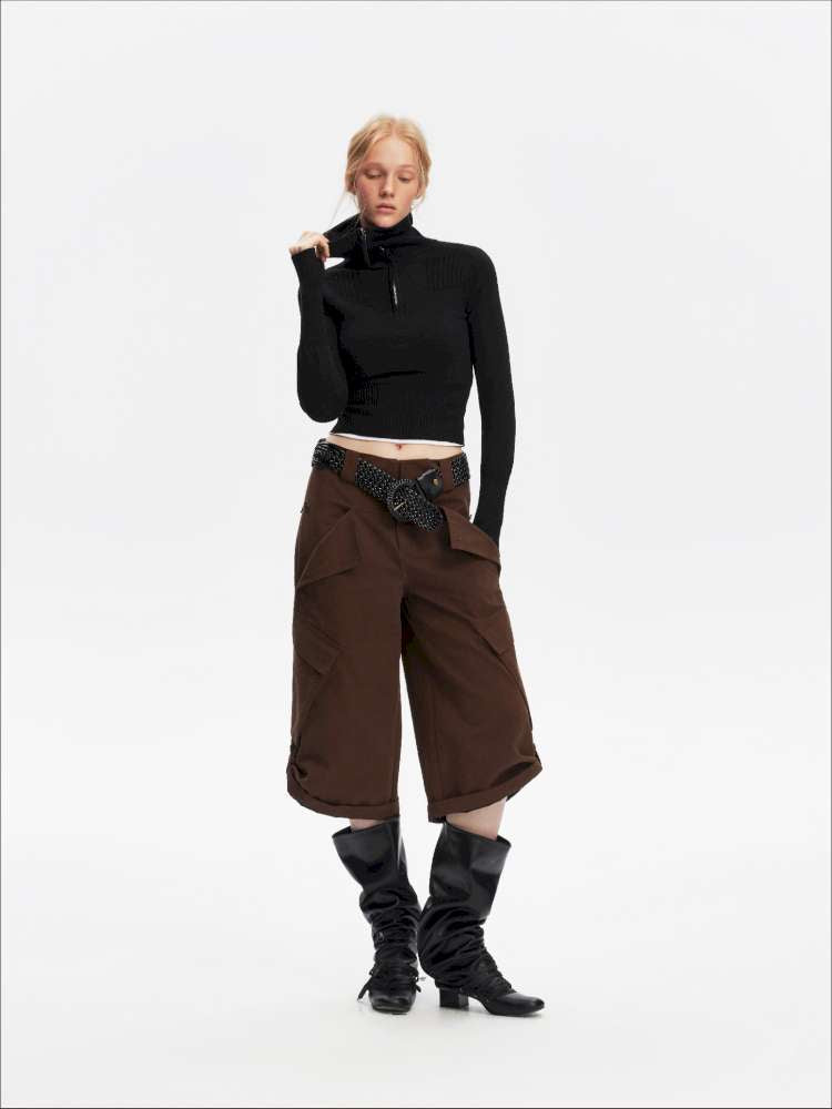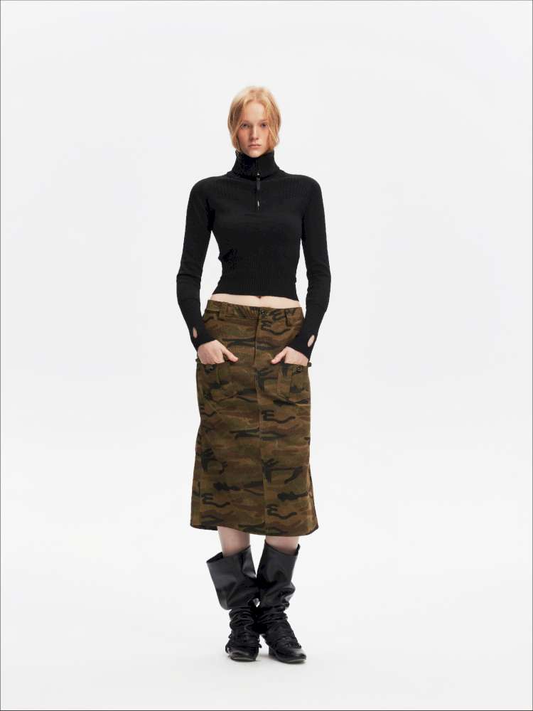 Half-Turtleneck Zip Knit Long-Sleeve T-Shirt【s0000014876】