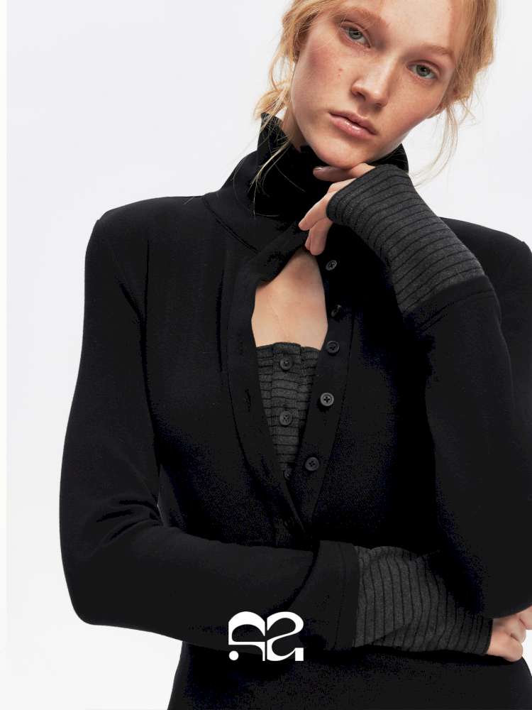 - Material:Black Knit: Viscose 38% / Cotton 28.5% / Acrylic 28.5% / Spandex 5% / Striped fabric: Polyester 75% / Rayon 22% / Spandex 3%