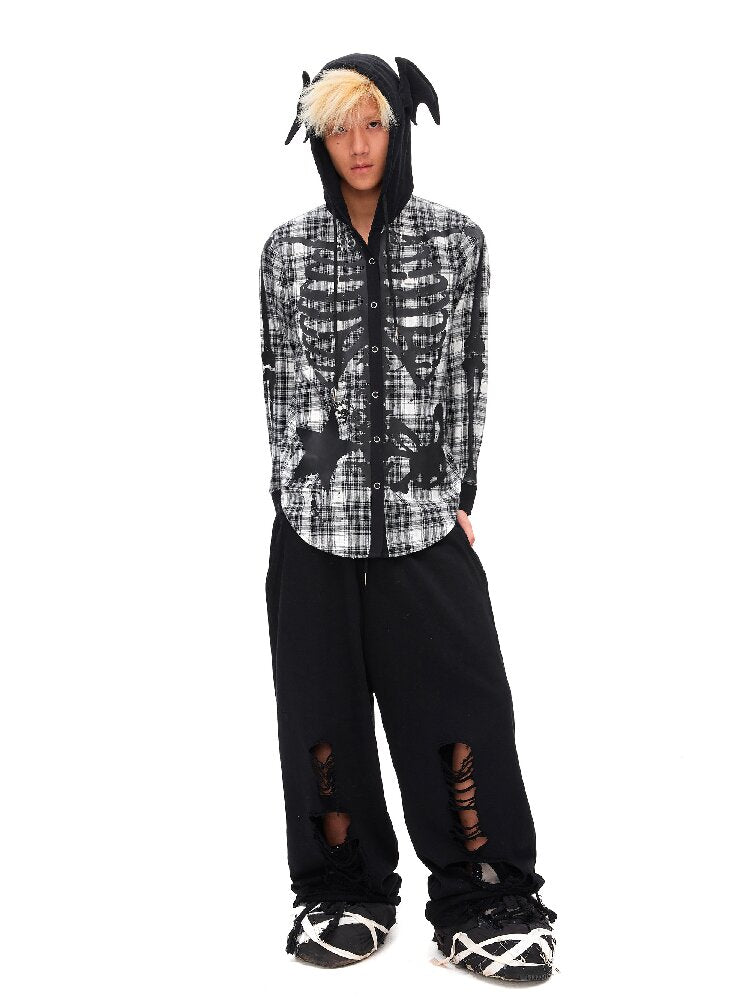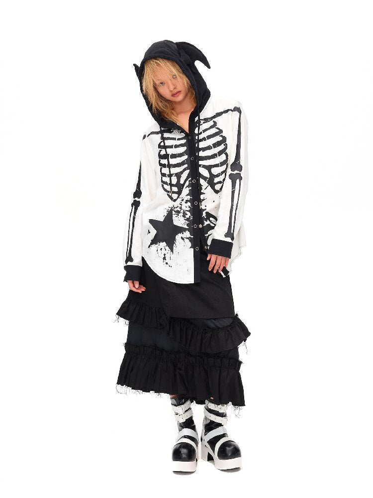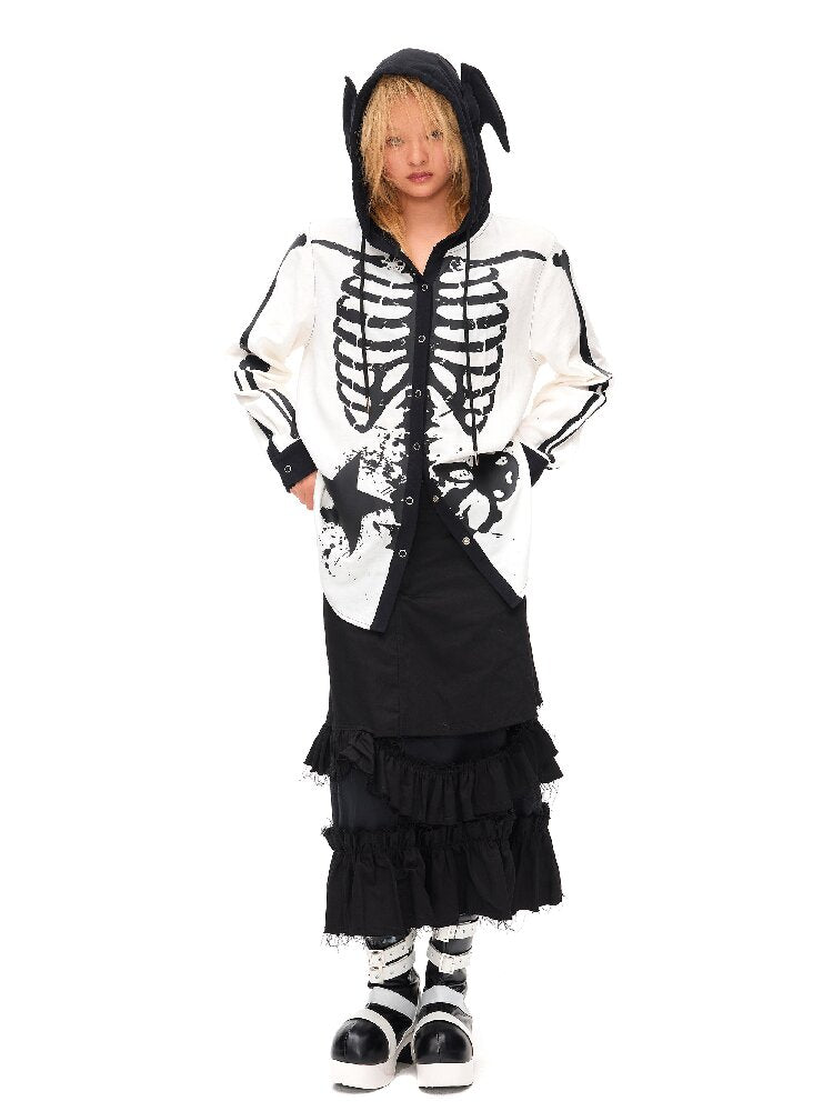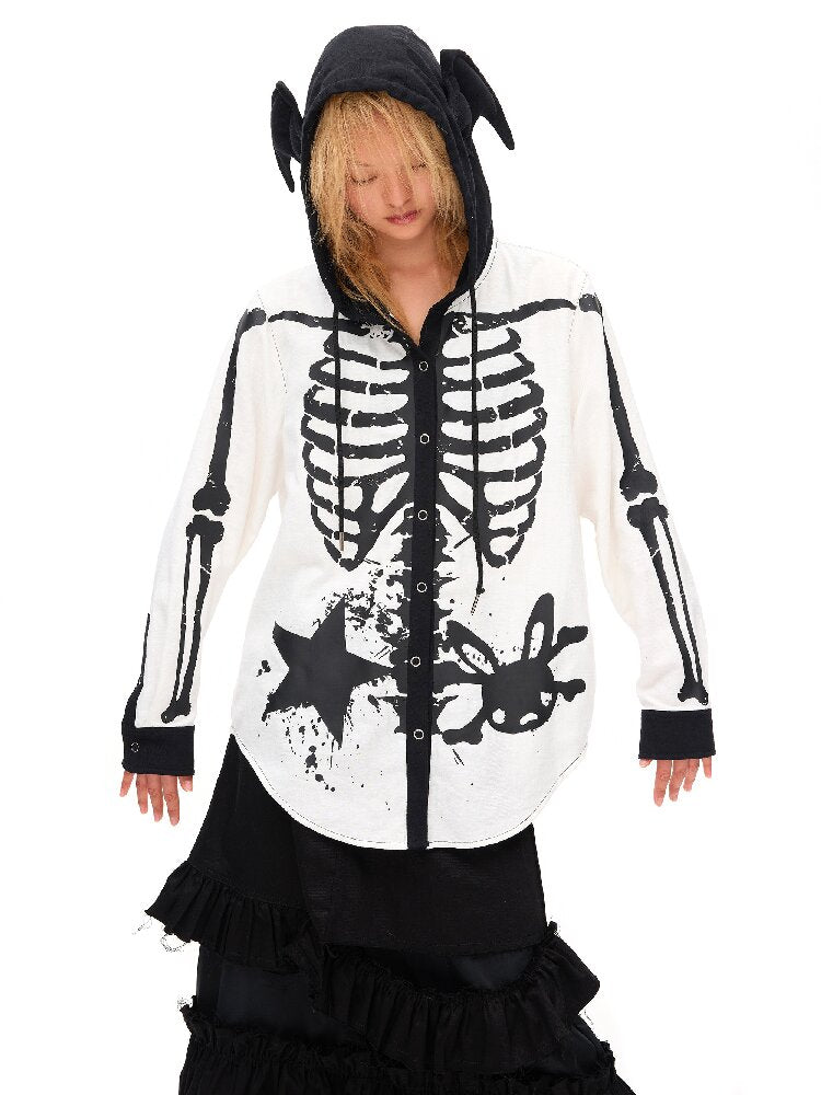 Demon Skeleton Print Hooded Shirt【s0000016054】
