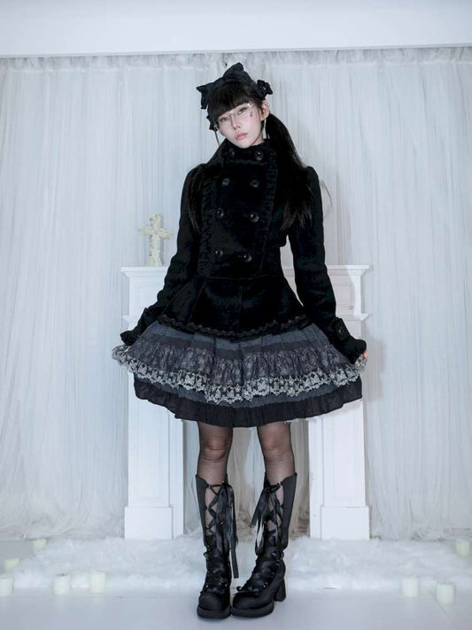 Black Woolen Loose Double-Breasted Coat【s0000014875】