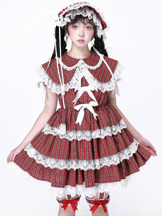 Colorful Lace Plaid Patchwork Black Dress【s0000014823】
