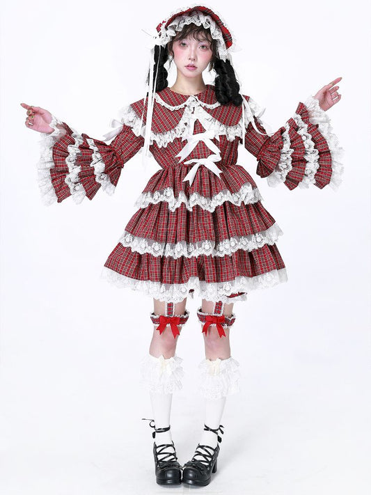 Twilight Doll Plaid Big Bow Cake Dress【s0000014800】