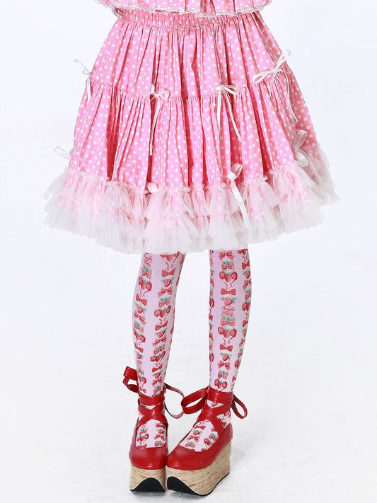 Button Vintage Polka Dot Chiffon Skirt【s0000014901】