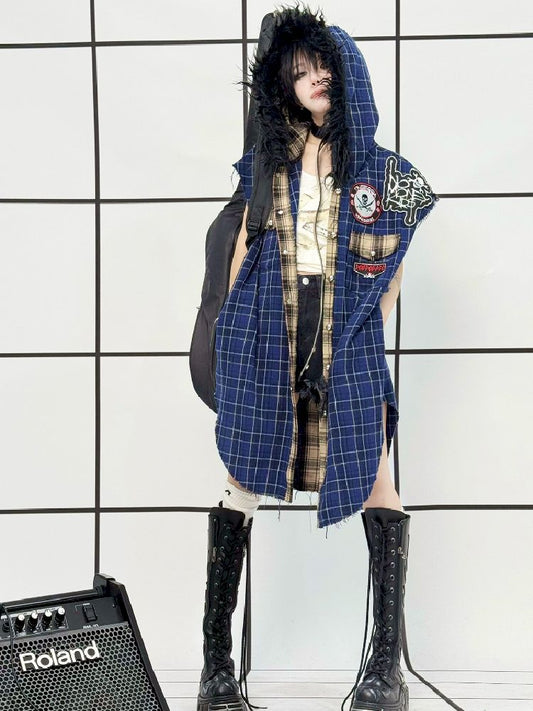Punk Plaid Denim Bat Woolen Coat【s0000014929】