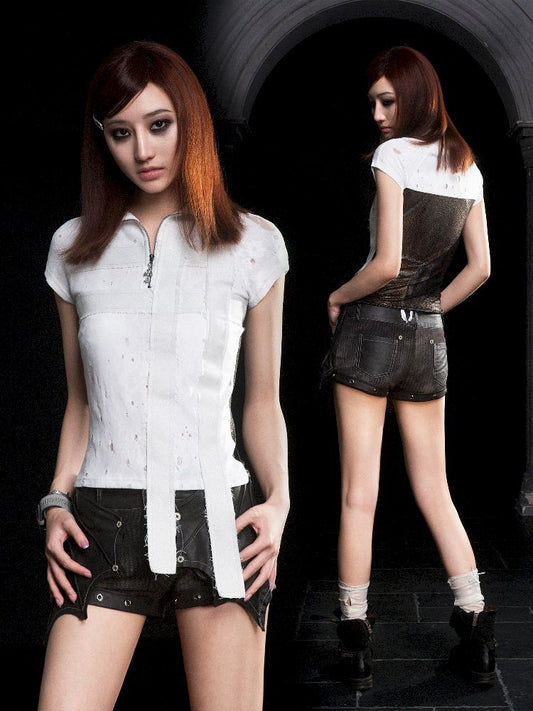 Two Tone Stretch Cross Rivet Top【s0000015010】