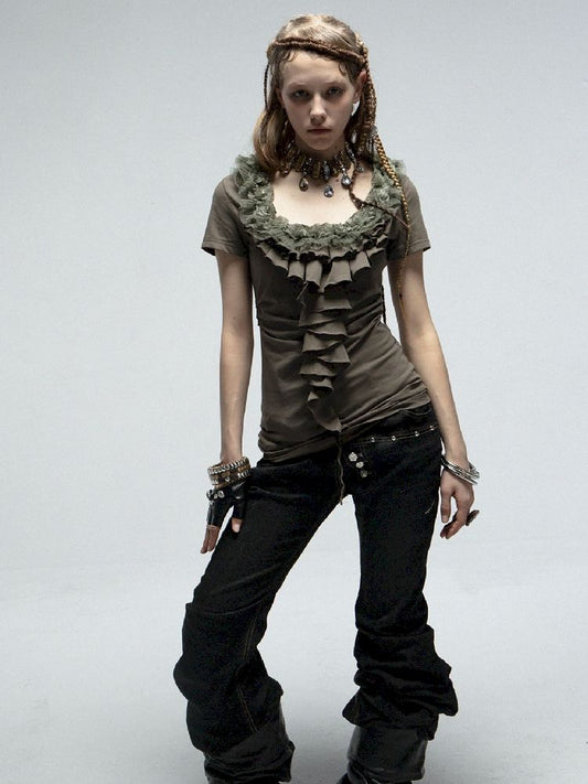 Off-Shoulder Ruffled Mid-Length Slimming Punk Top【s0000014124】