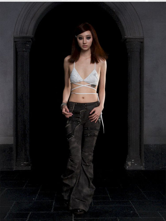 Aged washed low-rise curved cutoff jeans【s0000012397】