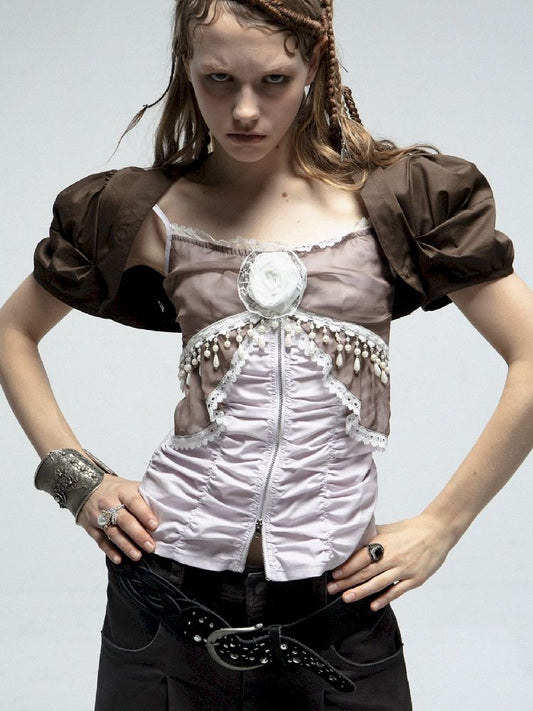 Lace Strappy Flared Velvet Shirt【s0000015014】