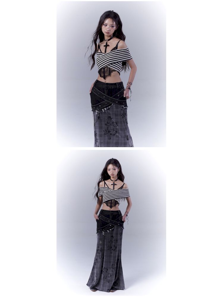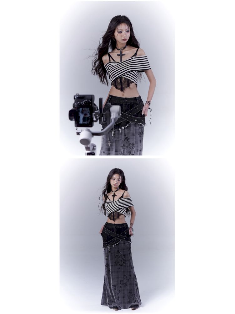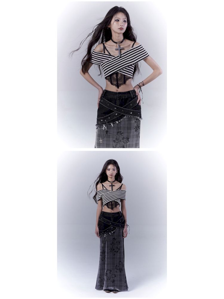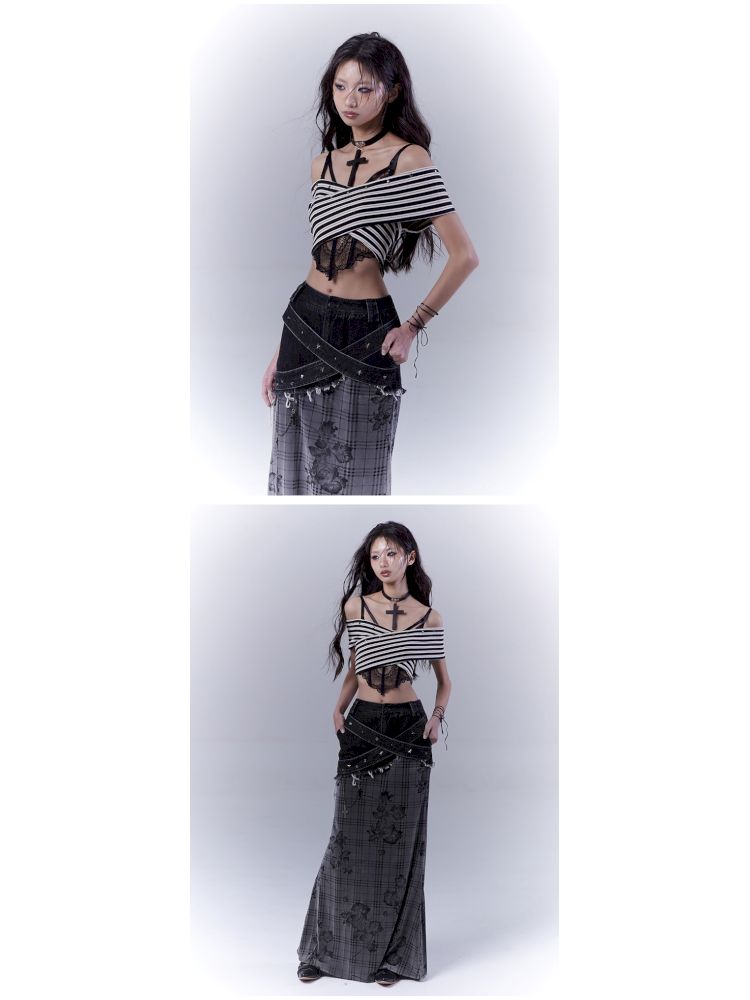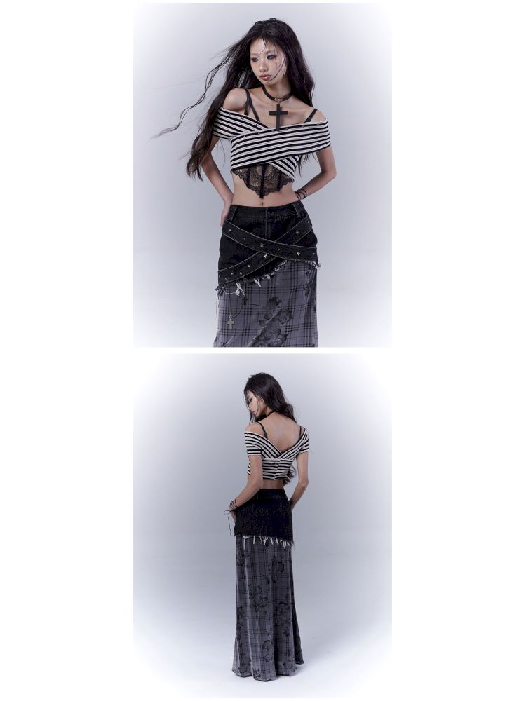 One-shoulder striped hot bustier top【s0000012839】