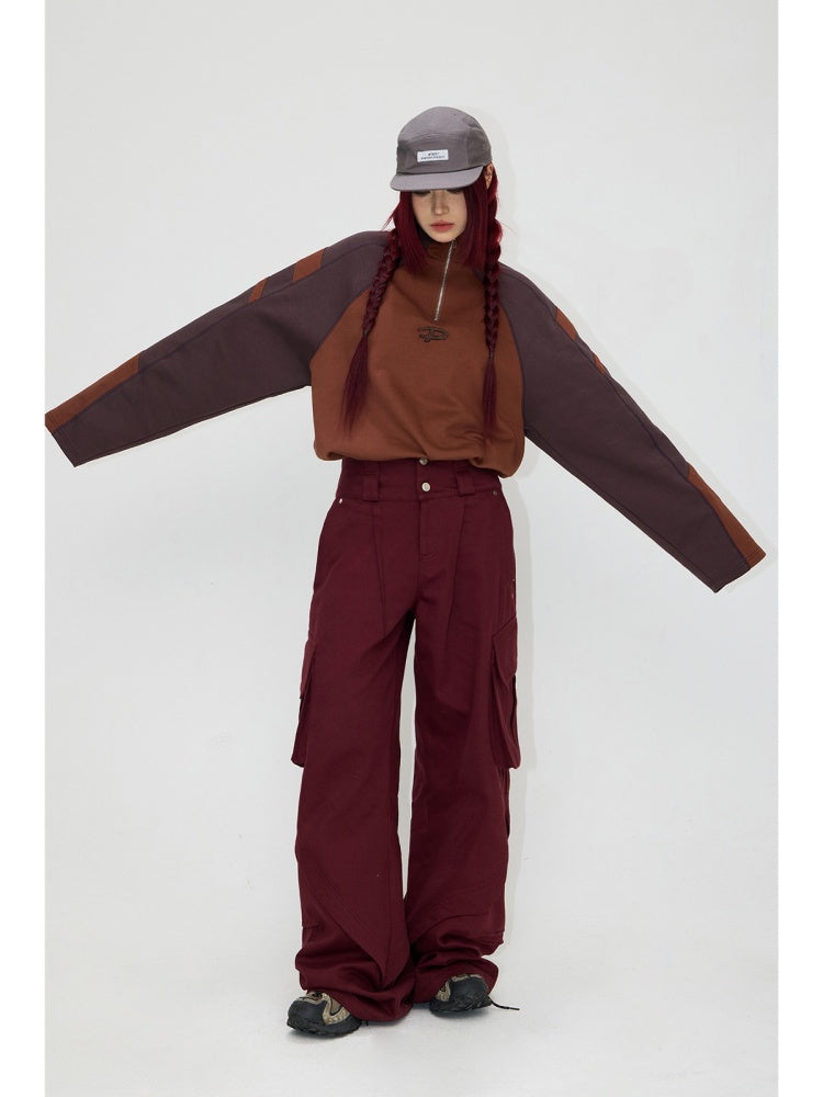 Stand Collar Half Zip Color Block Pullover【s0000004201】