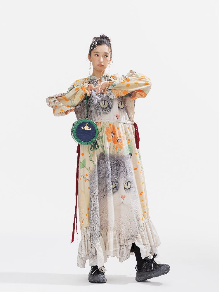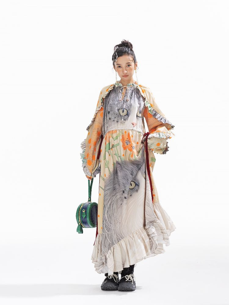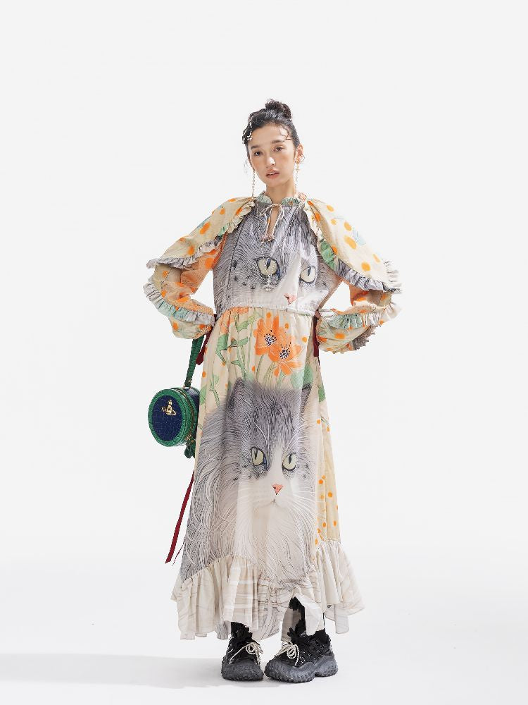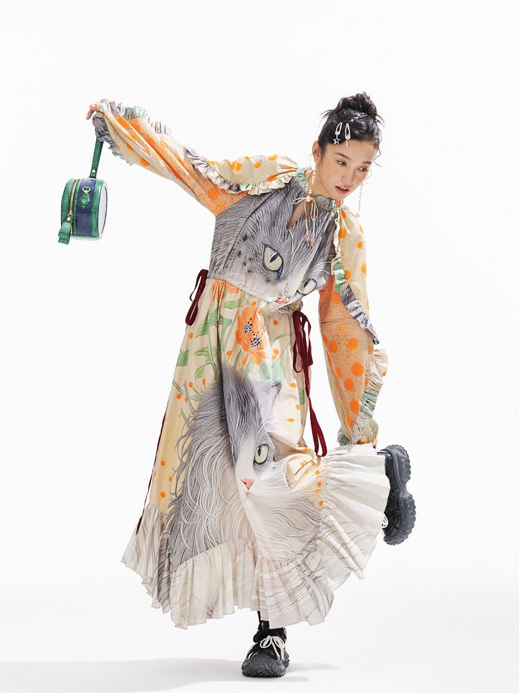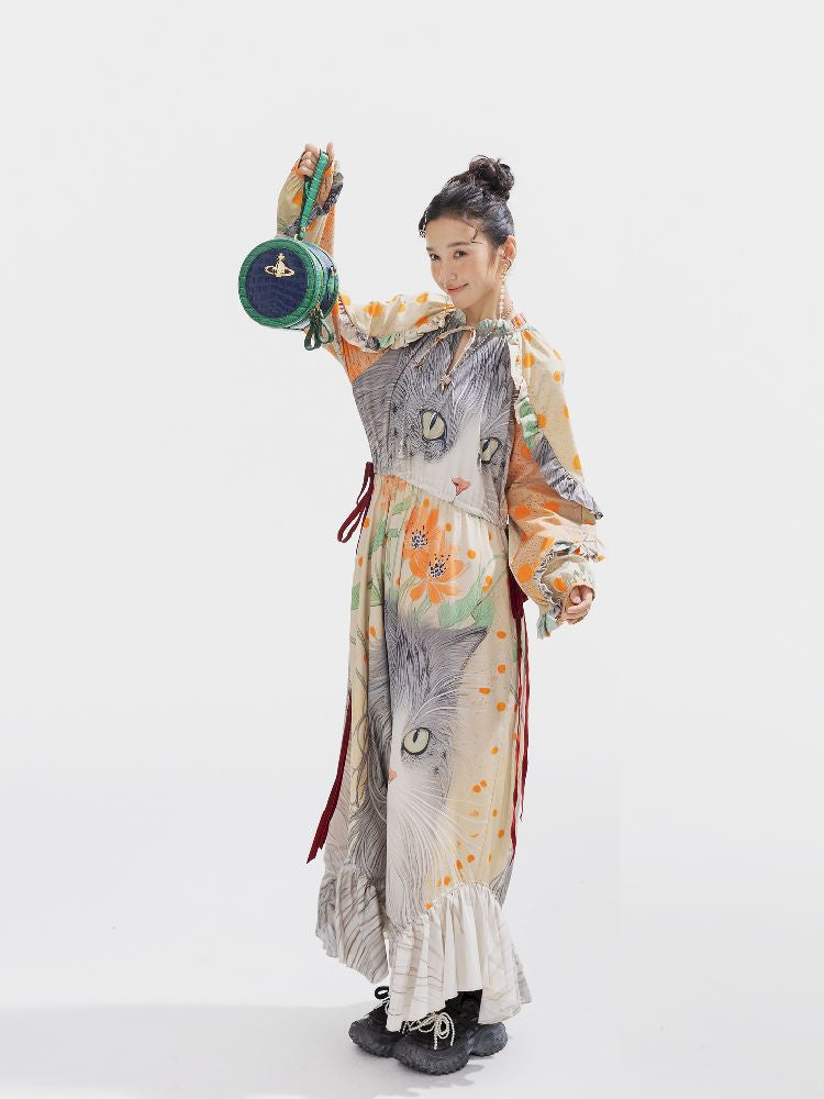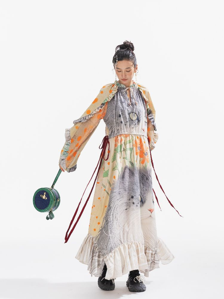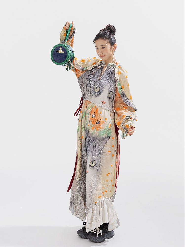 인쇄 된 길고 느슨한 드레스 [S0000011312]