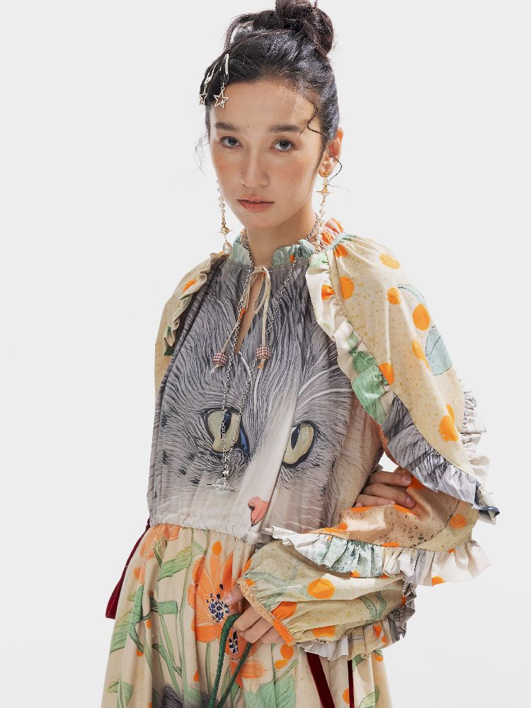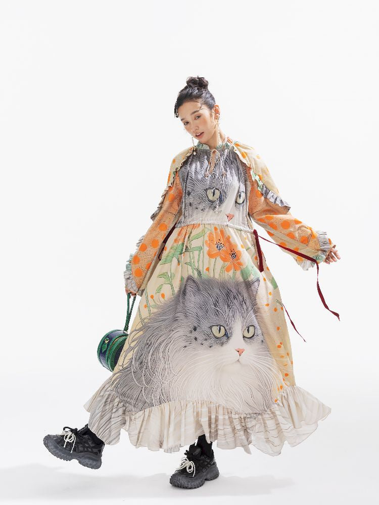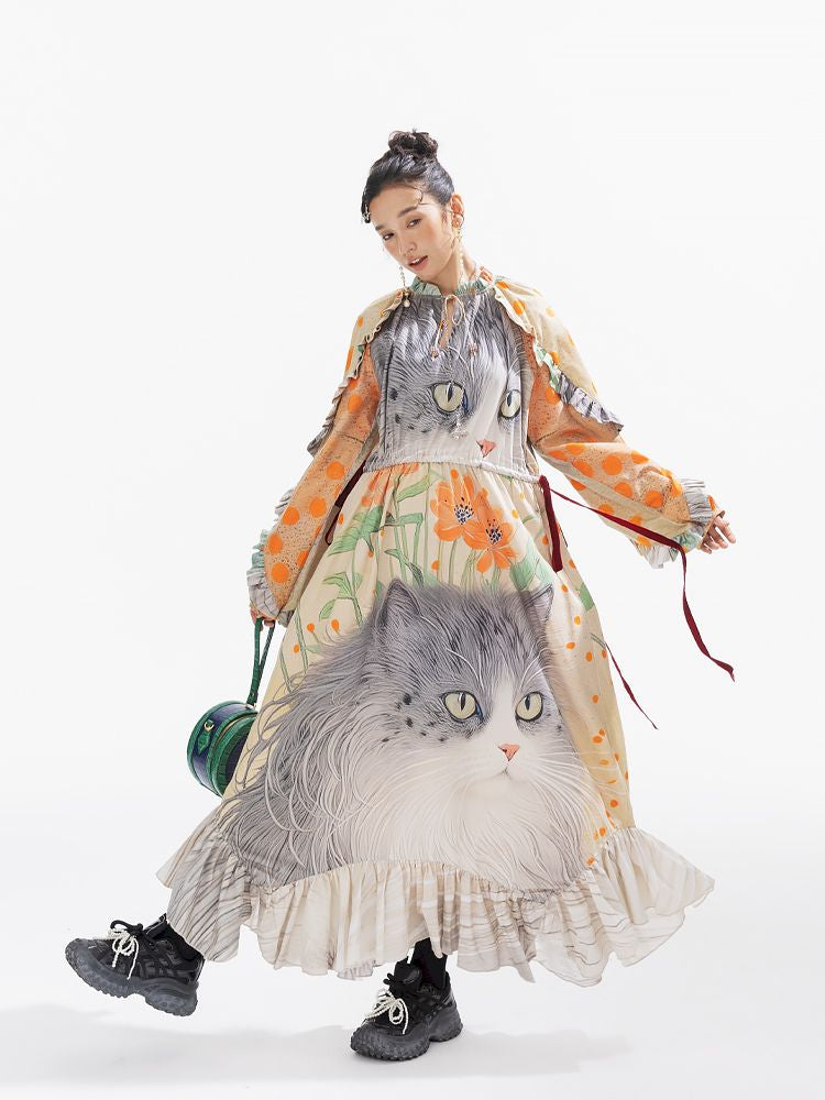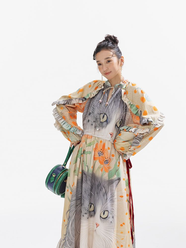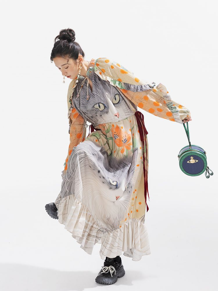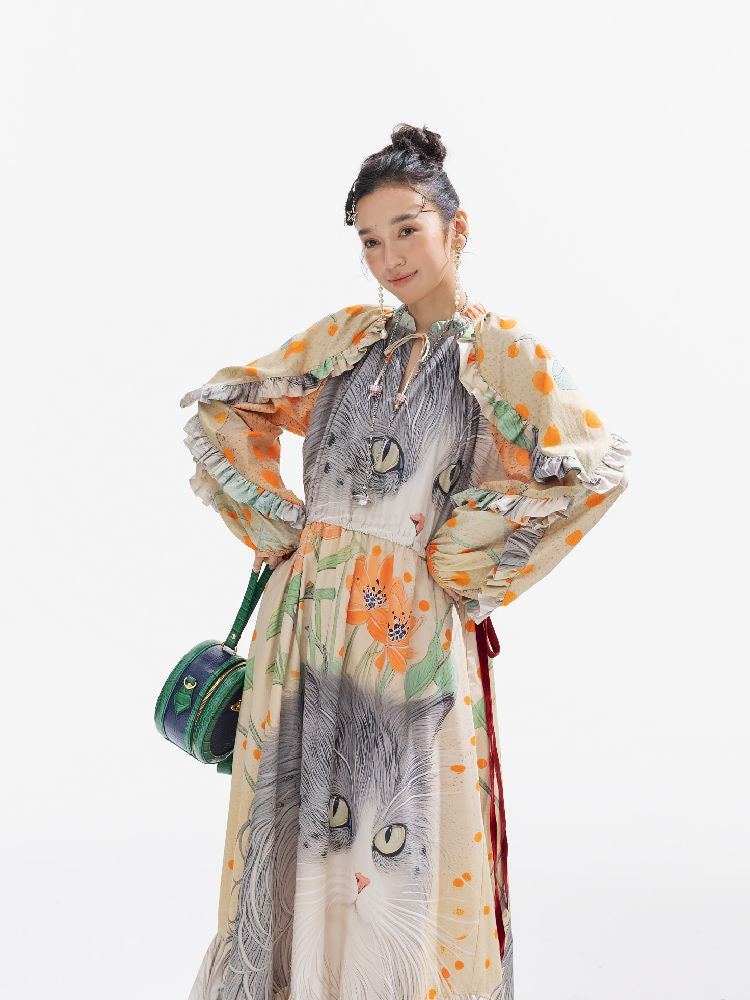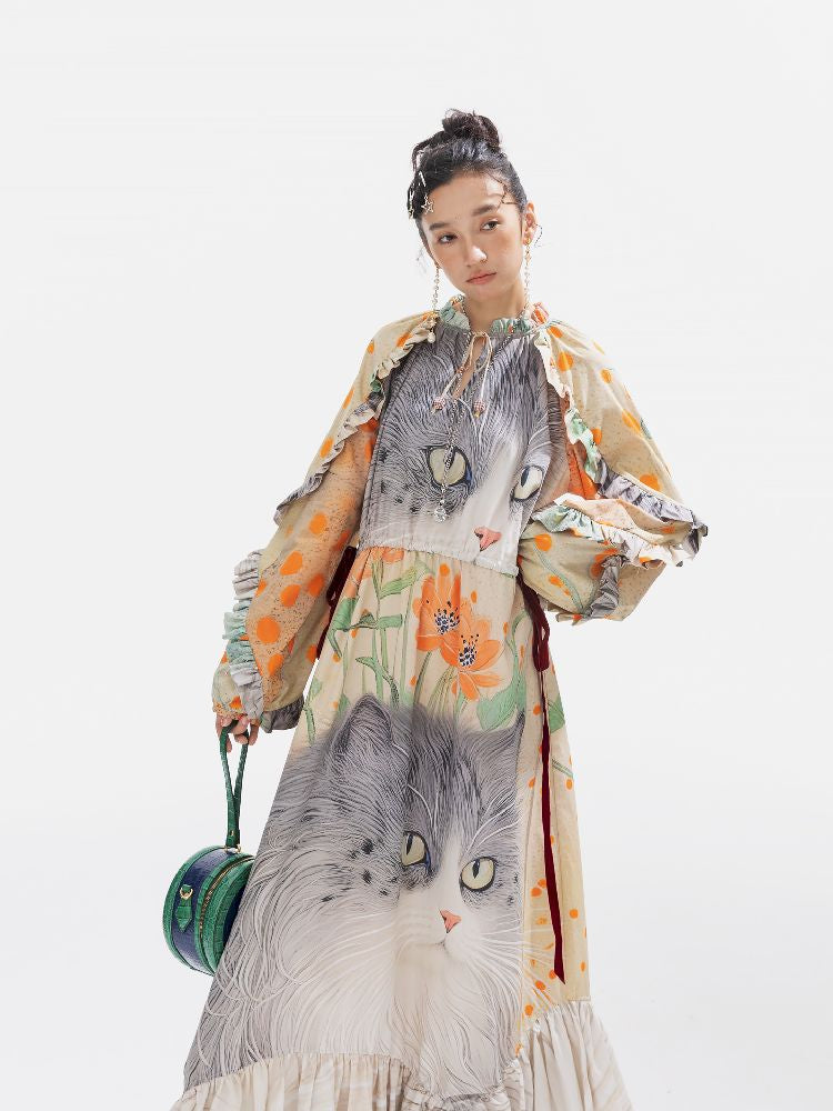 인쇄 된 길고 느슨한 드레스 [S0000011312]