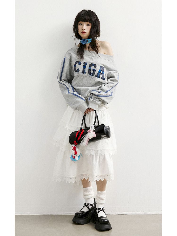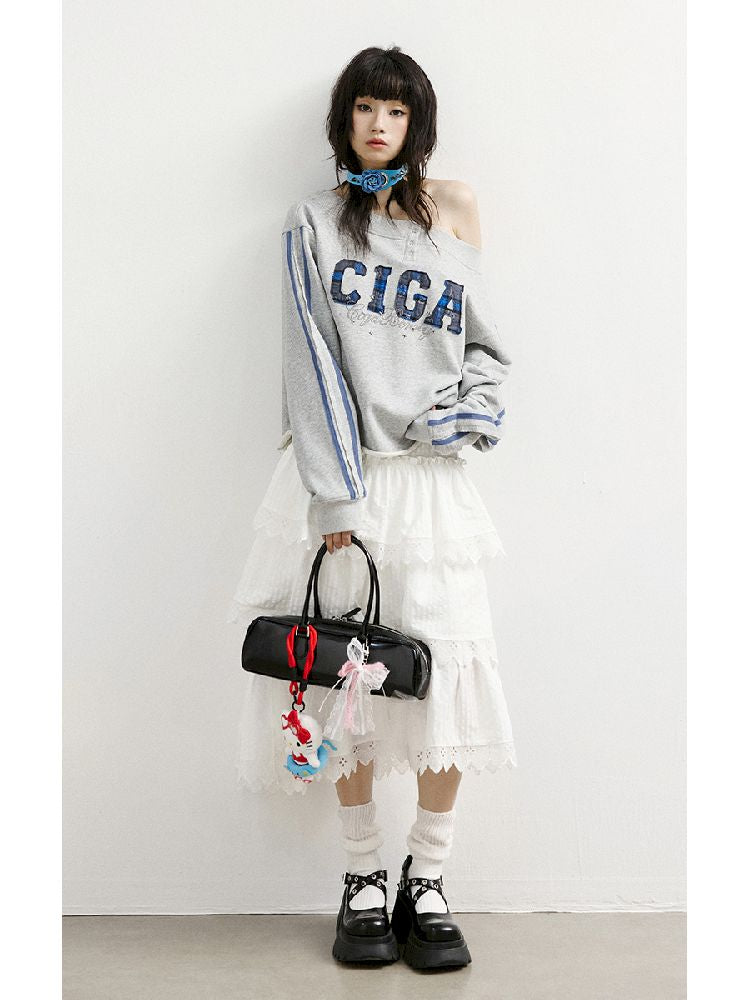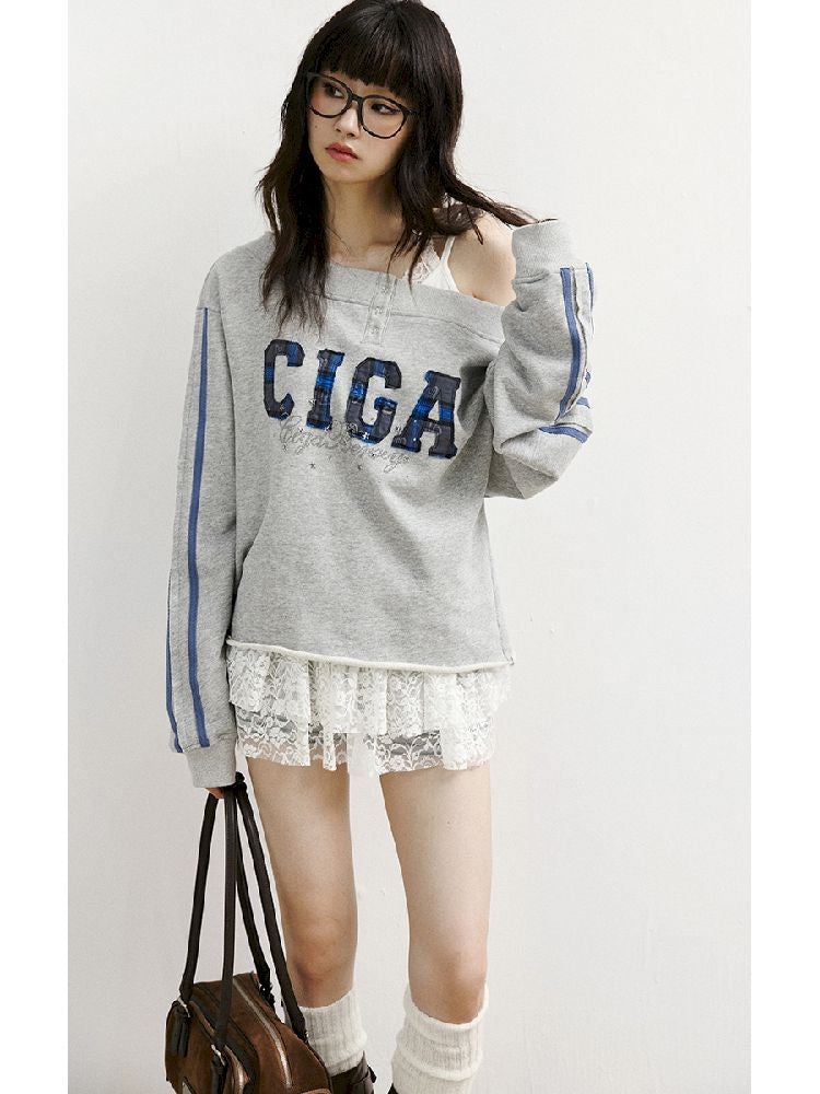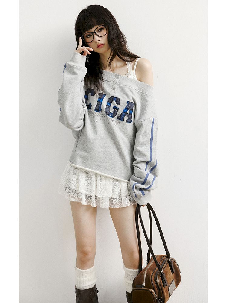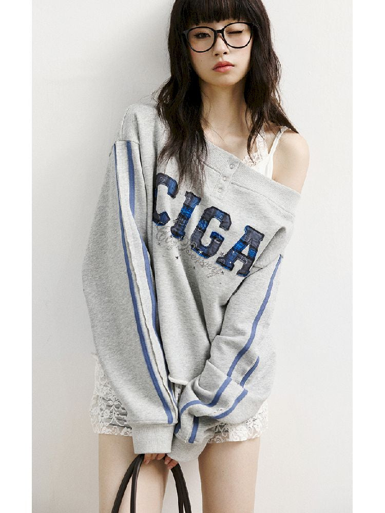 하나의 어깨 슬래시 다중 스웨트 셔츠 [S0000011427]