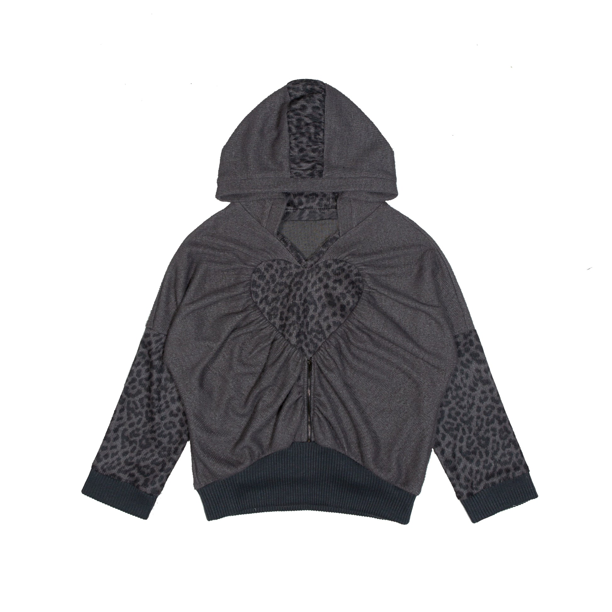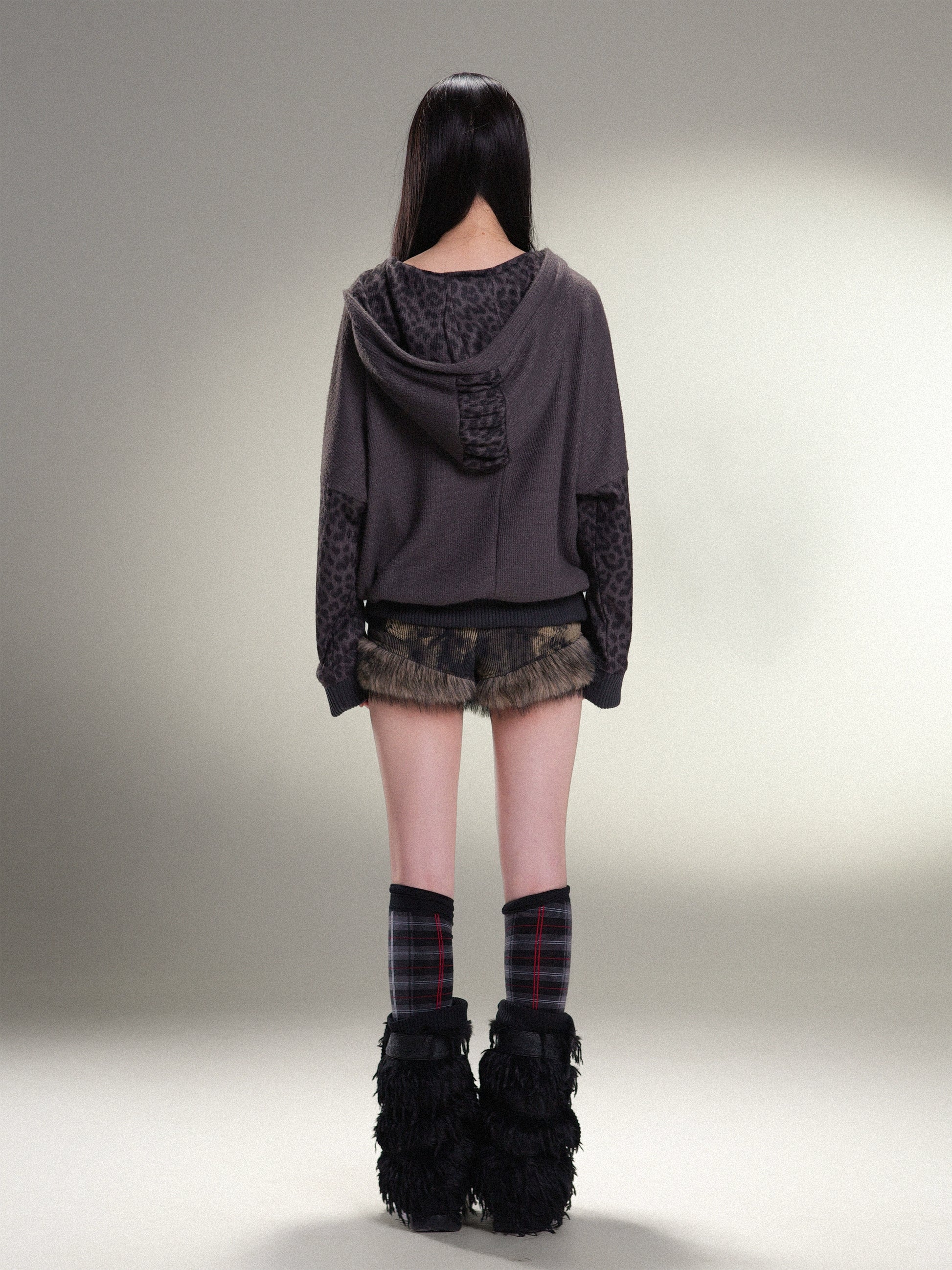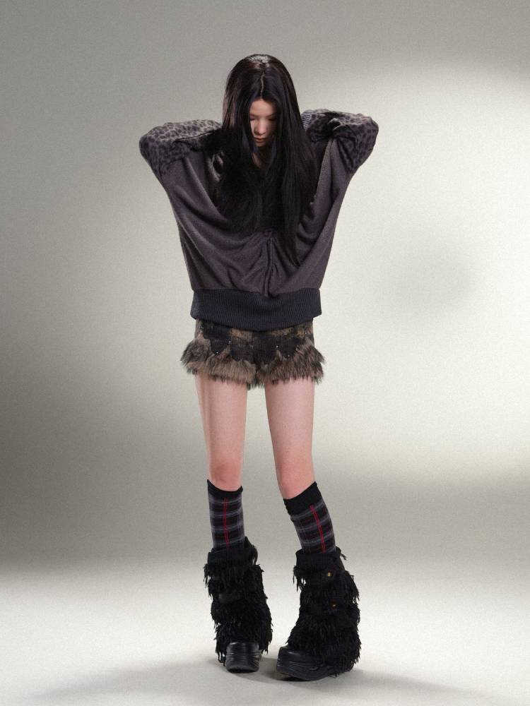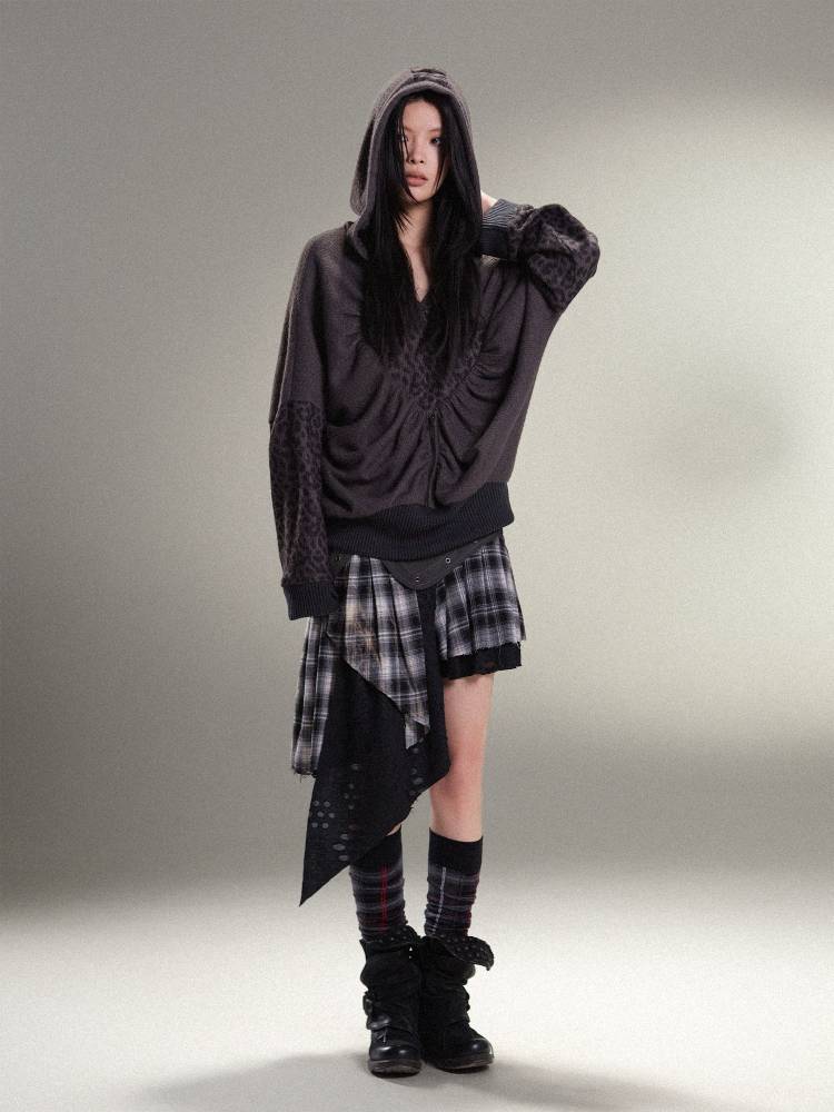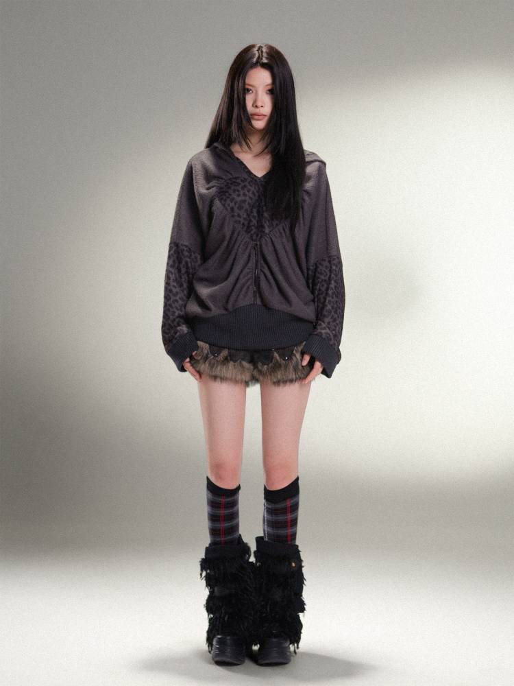 표범 프린트 하트 후드 느슨한 니트 탑 【S000011456】