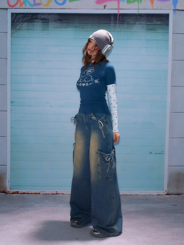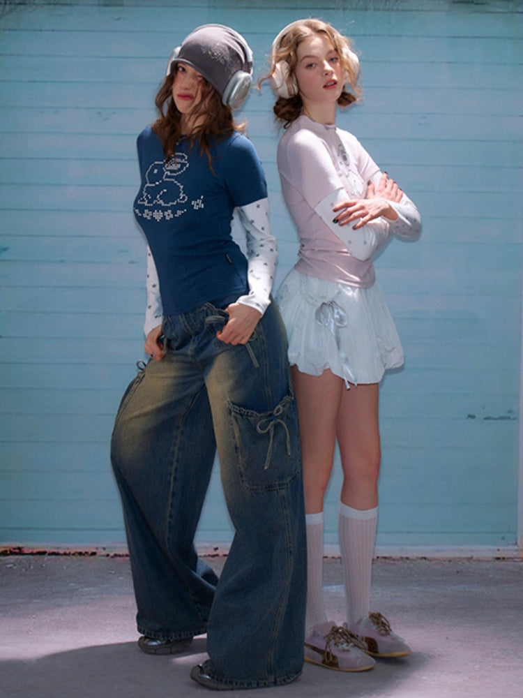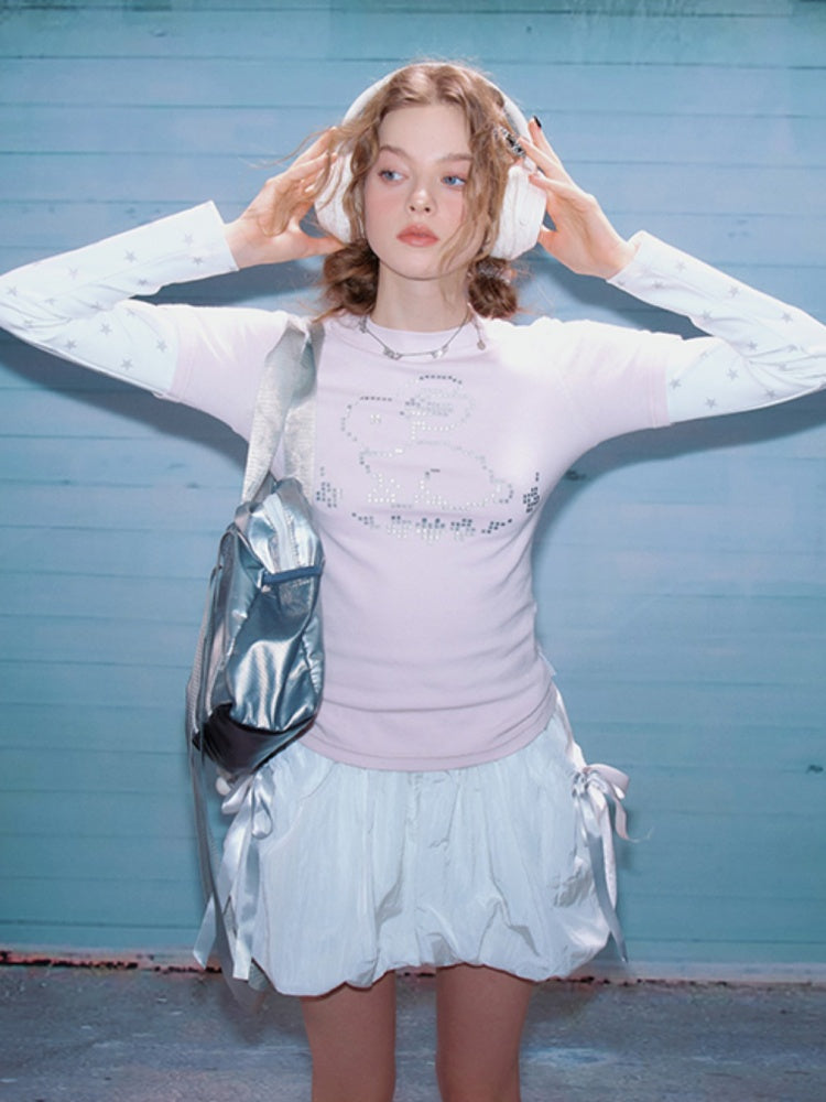 Rabbit & Star Print Fake Layering Long Sleeve T-Shirt【s0000011750】