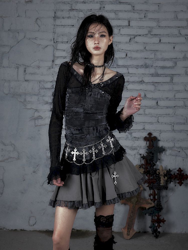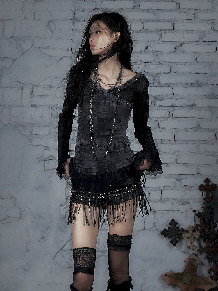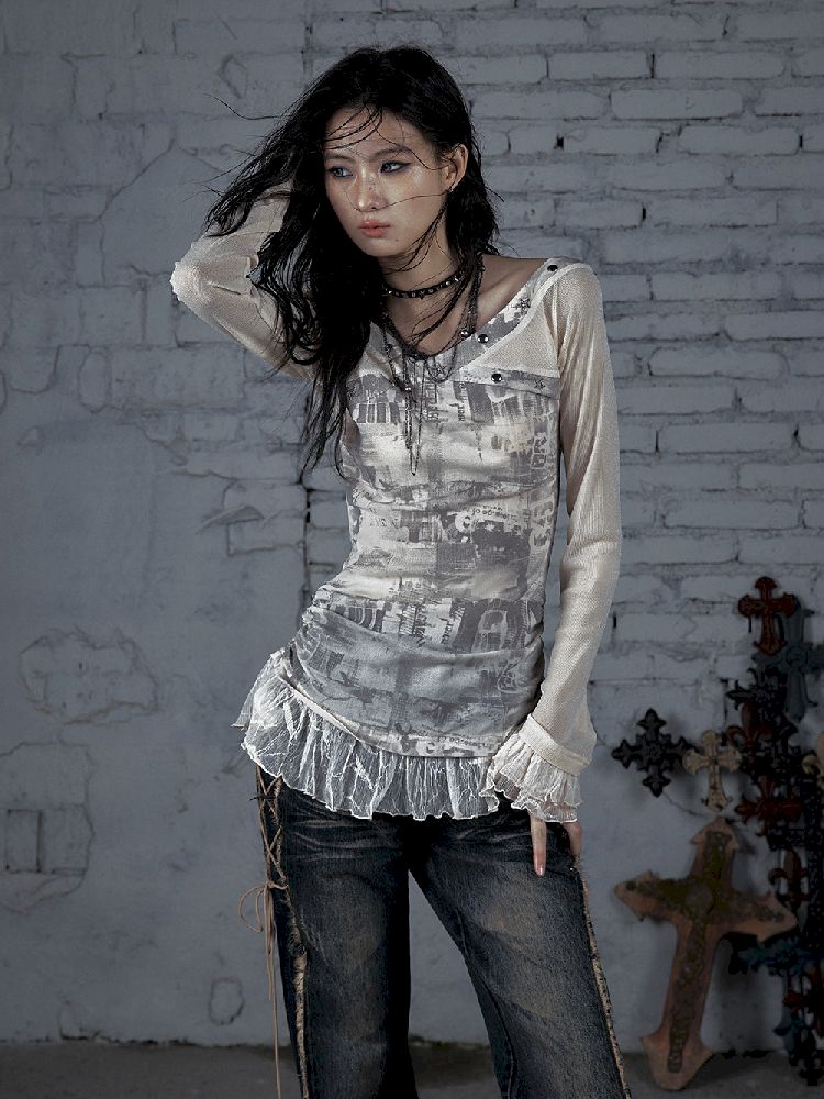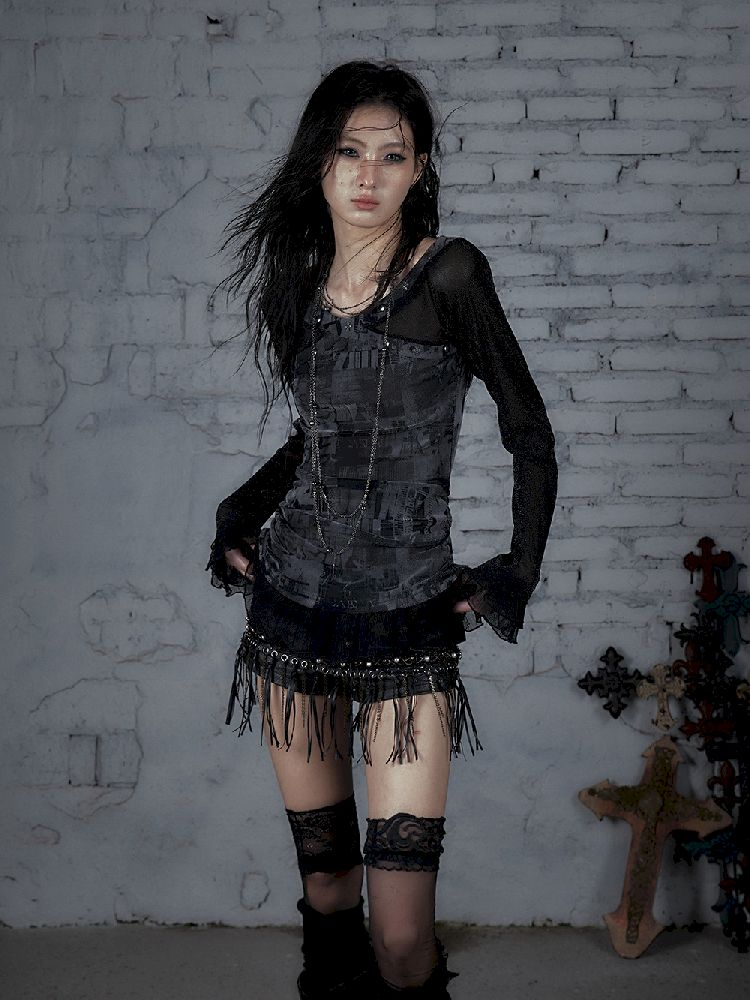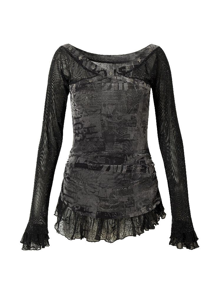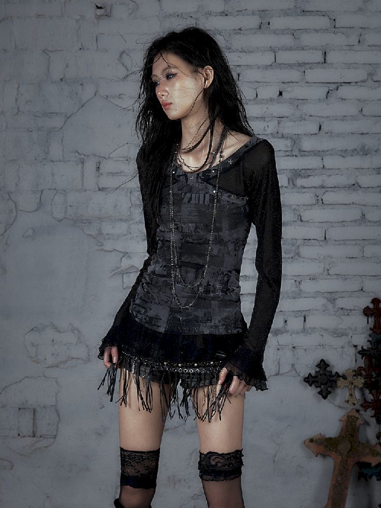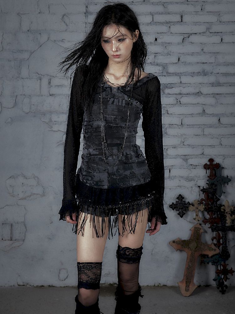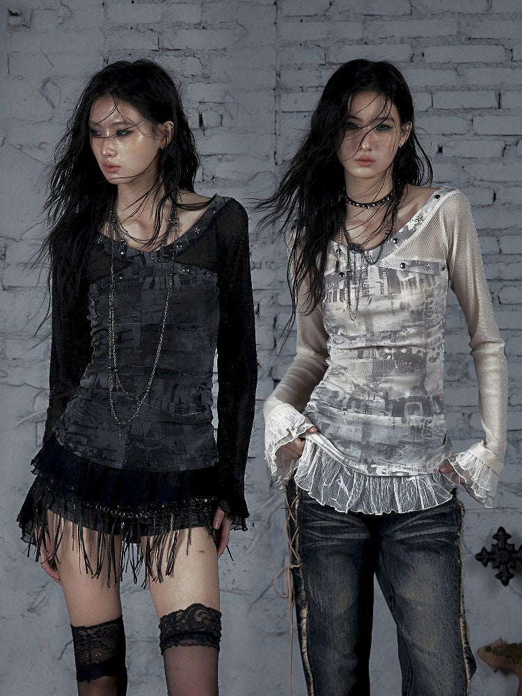 메쉬 스 플라이 싱 슬림 스트레치 긴 슬리브 티셔츠 [S0000011824]