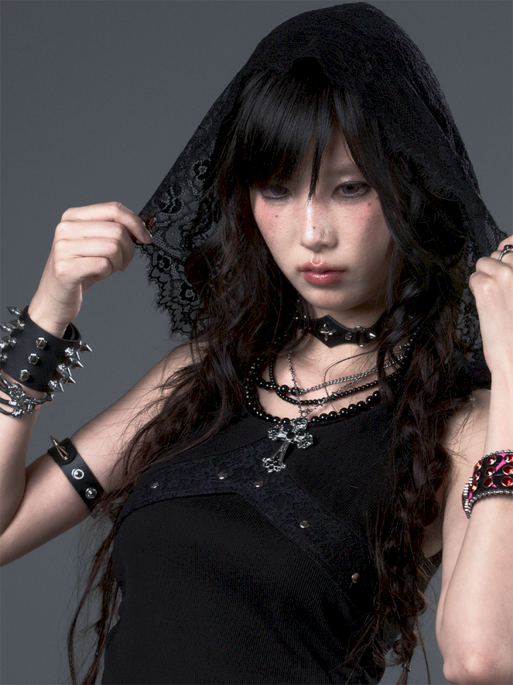 Lace Hooded Sleeveless Tank Top【s0000012339】
