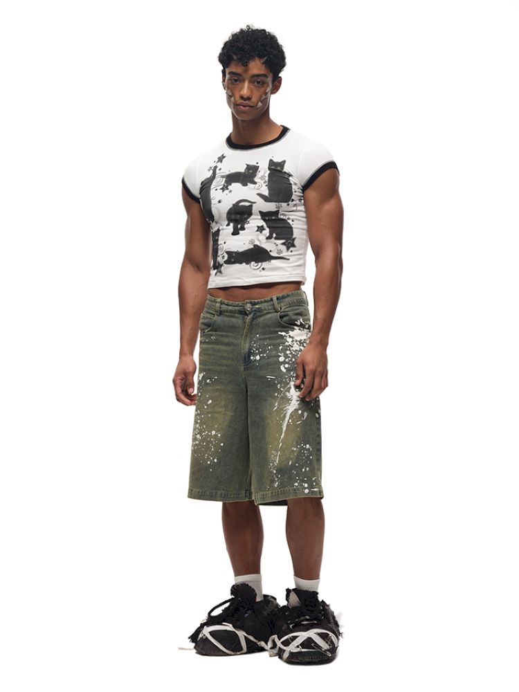 Black Cat Print Short Sleeve T-Shirt【s0000012587】