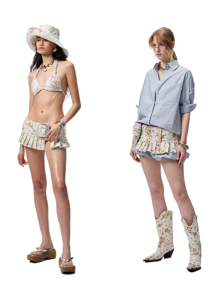 Floral Canvas Waistband Pleated Split Skirt【s0000012897】