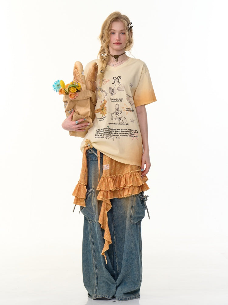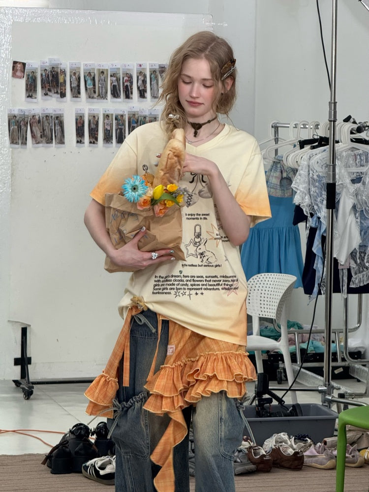 Plaid Irregular Pleated Ruffle Hem Layered Skirt【s0000013086】