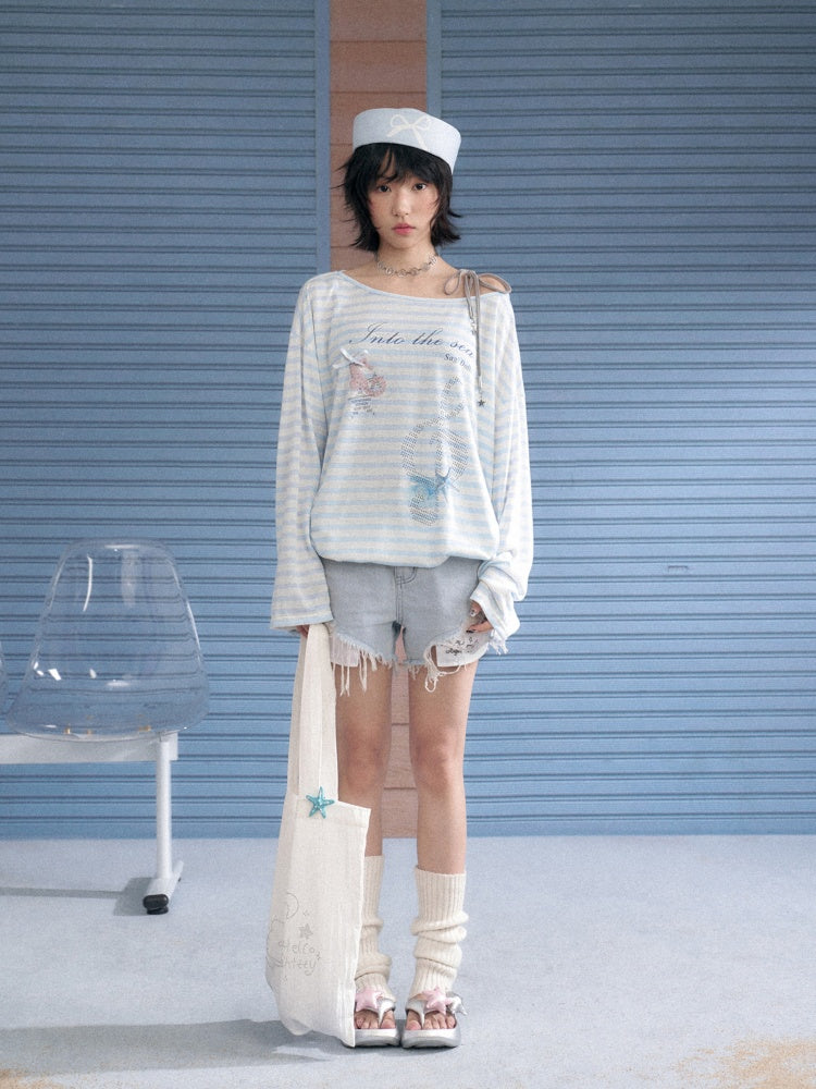 Striped Sheer Ocean Print T-Shirt & Camisole【s0000013127】