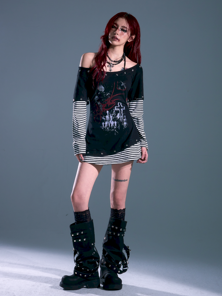 Slash Neck Slim Waisted Dresses t-shirt【s0000013694】
