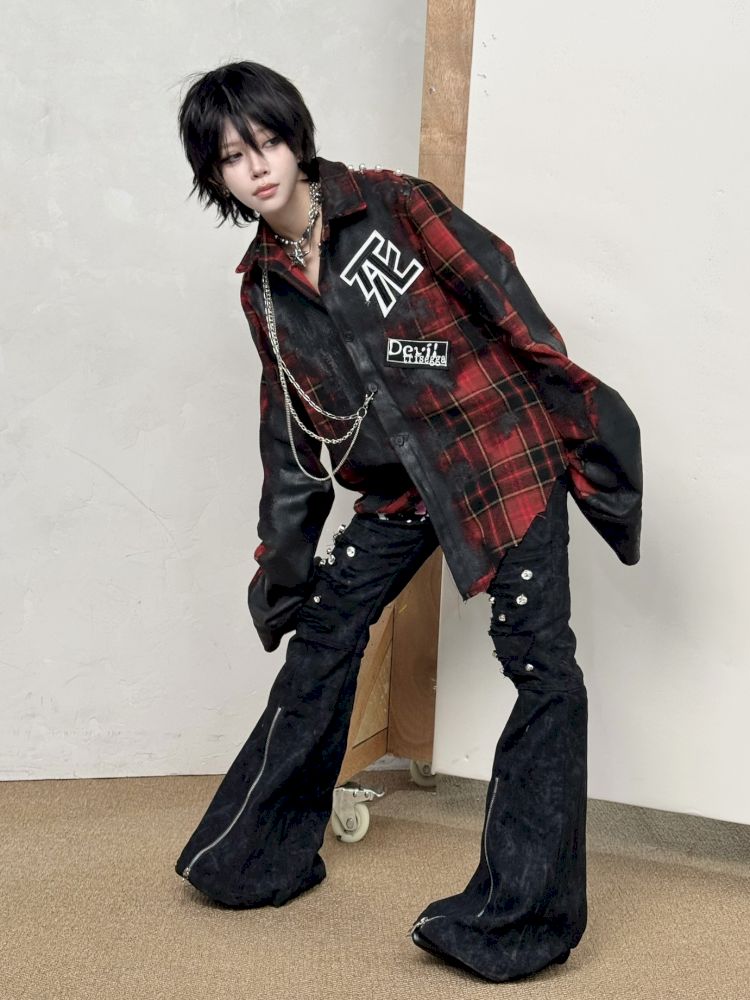 Ripped Print Destroyed Slim Flare Jeans【s0000013717】