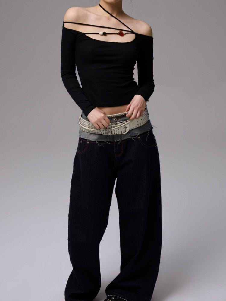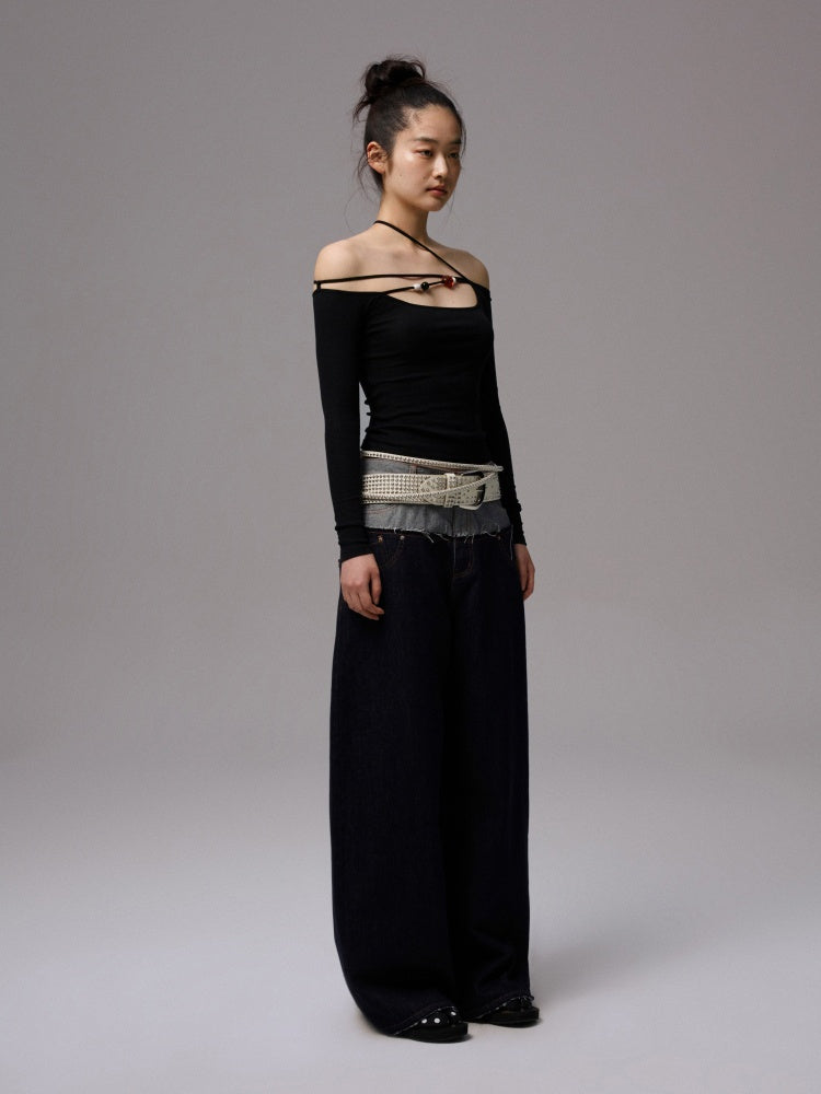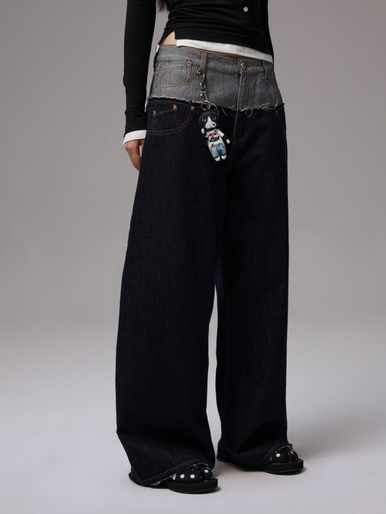 Double Waist Spliced Embroidered Loose Straight Floor Length Wide Leg Pants【s0000013855】