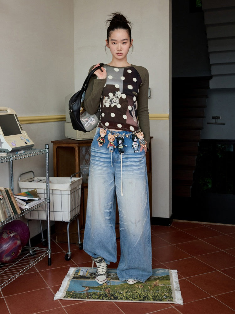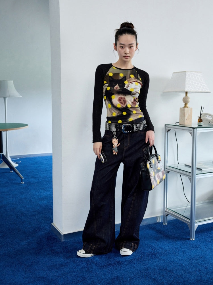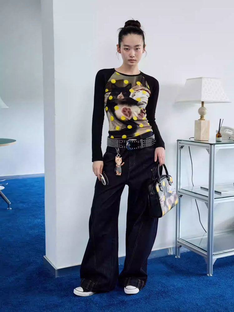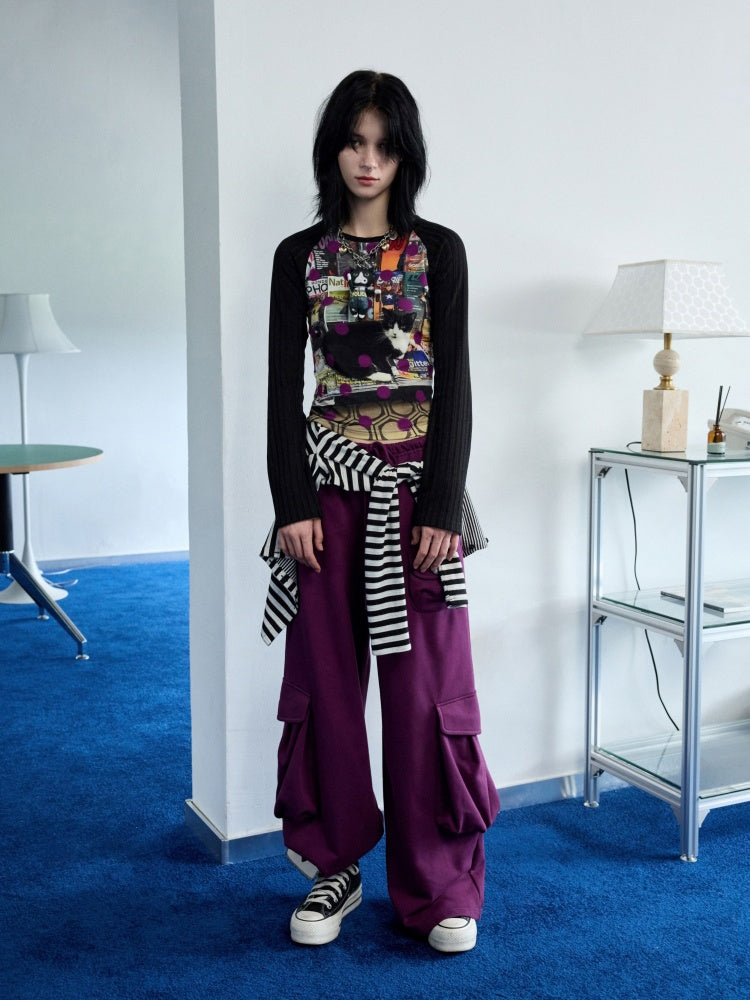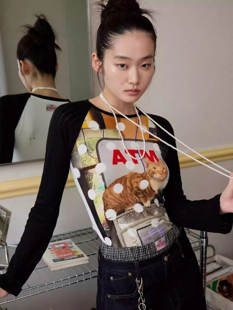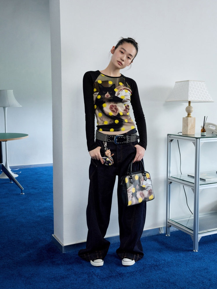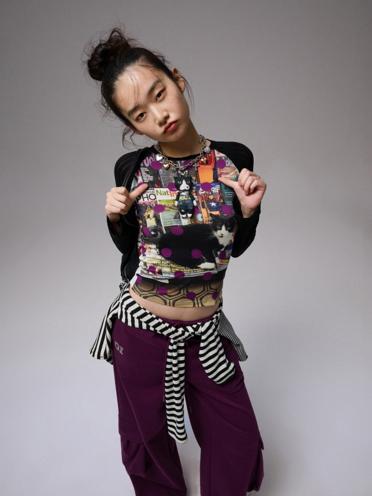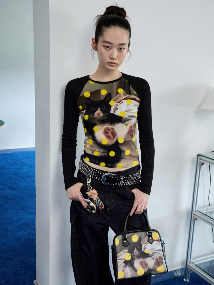 Cat & Dog Polka Dot Print Raglan Sleeve T-Shirt【s0000013863】
