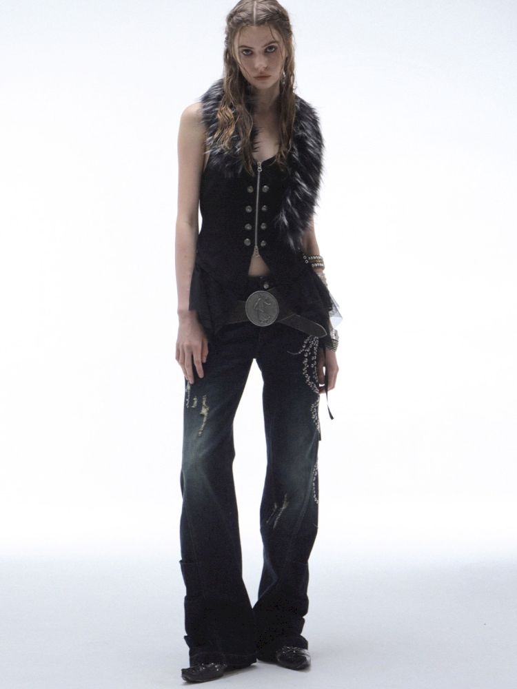 Frayed Layered Silhouette Denim Pants【s0000013903】