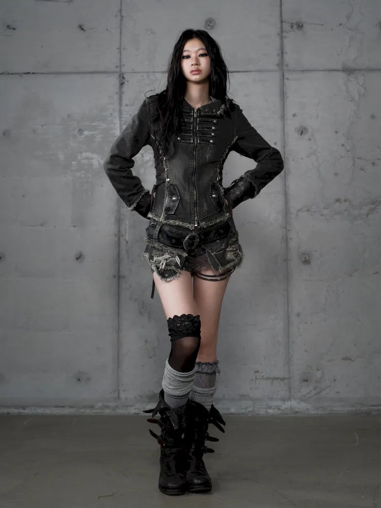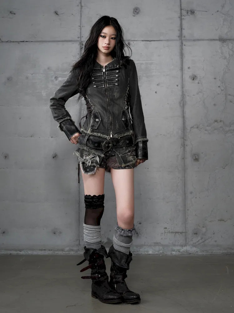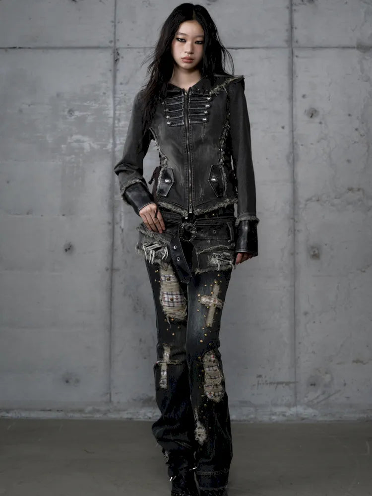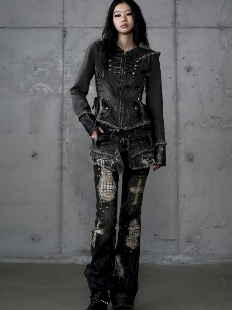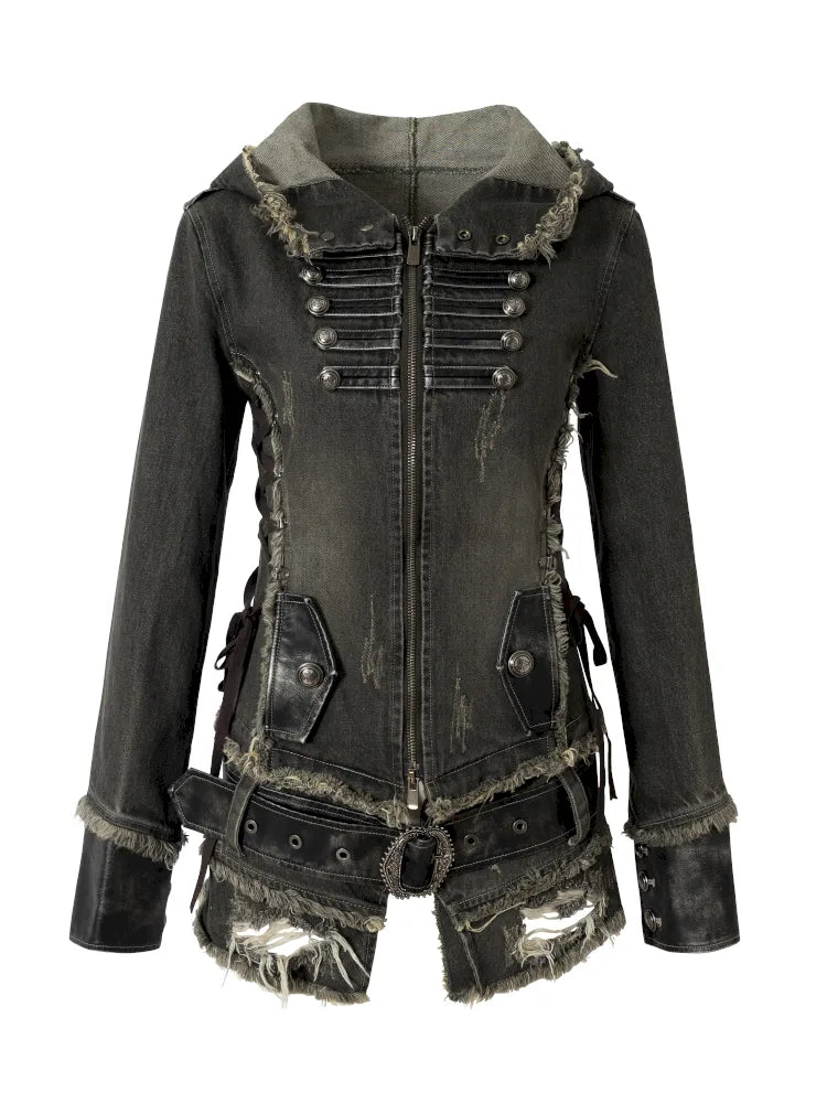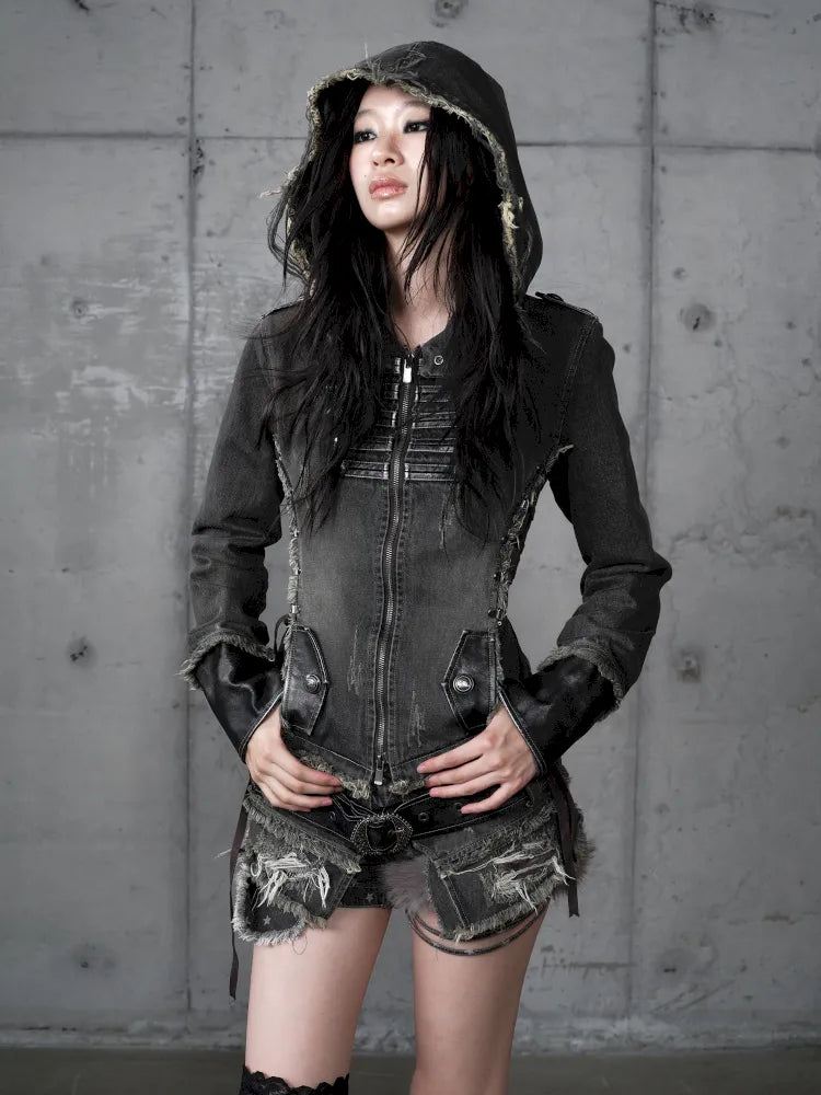 Denim Detachable Slim-Fit Hooded Jacket【s0000013951】