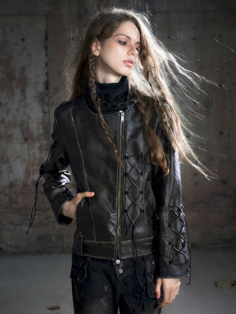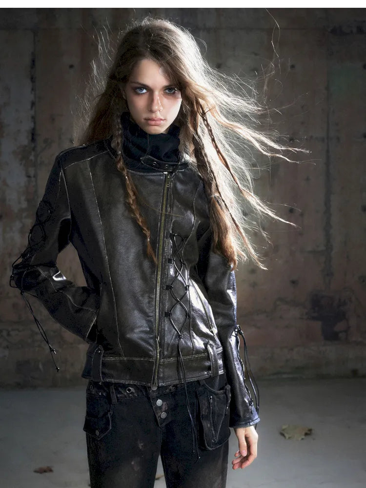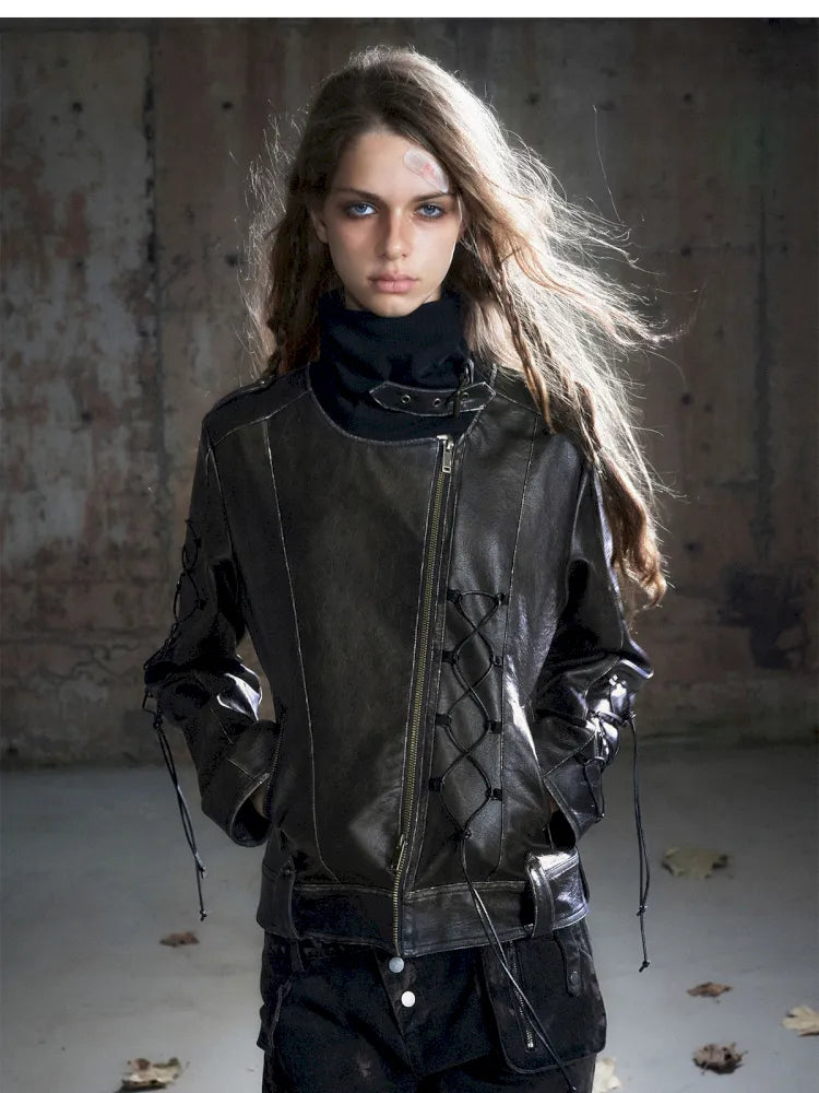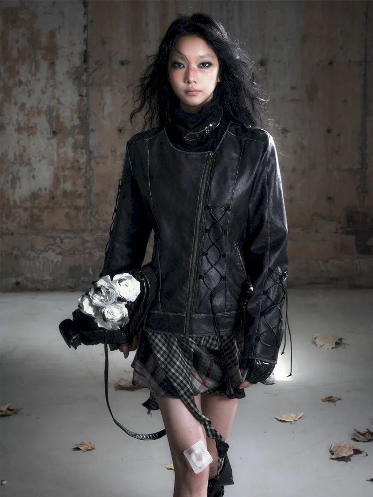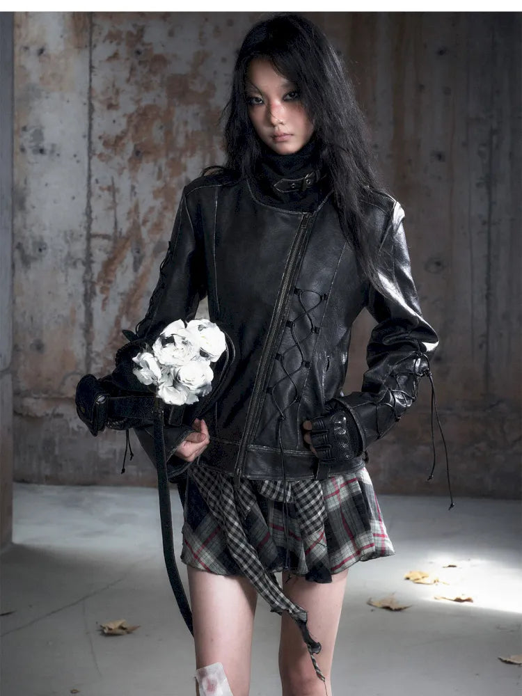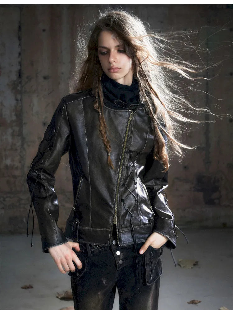 Strappy Slim-Fit Diagonal Zipper Coat【s0000013957】