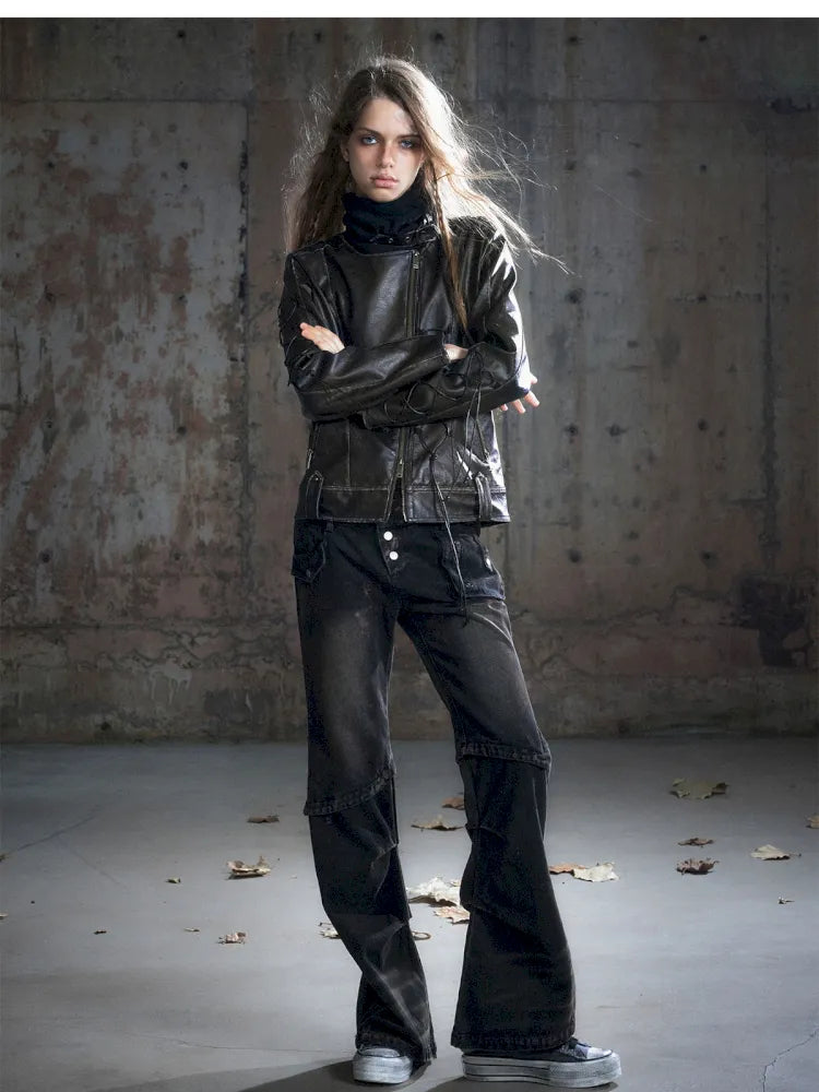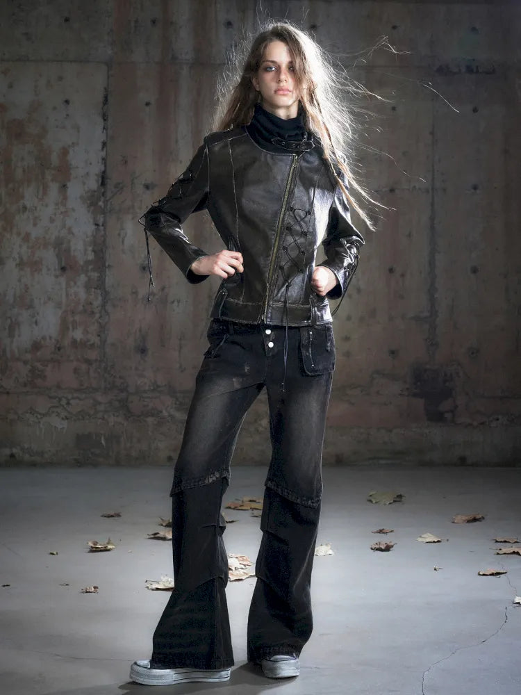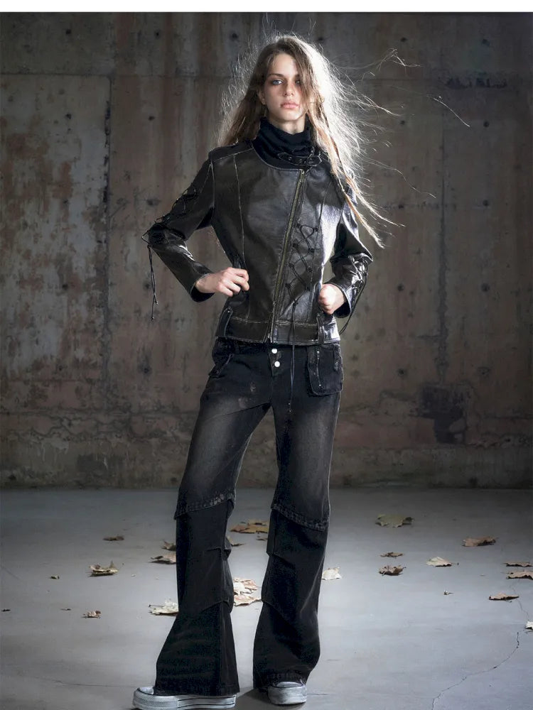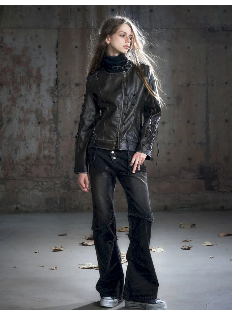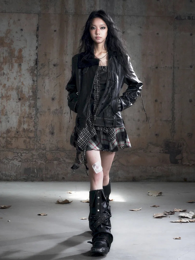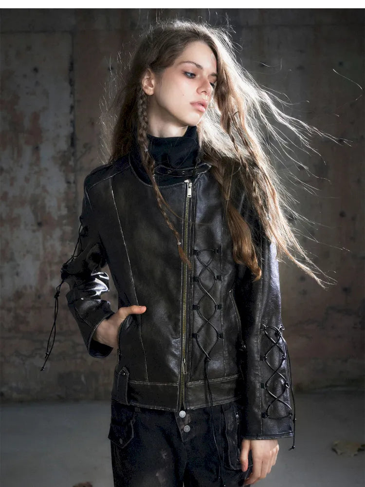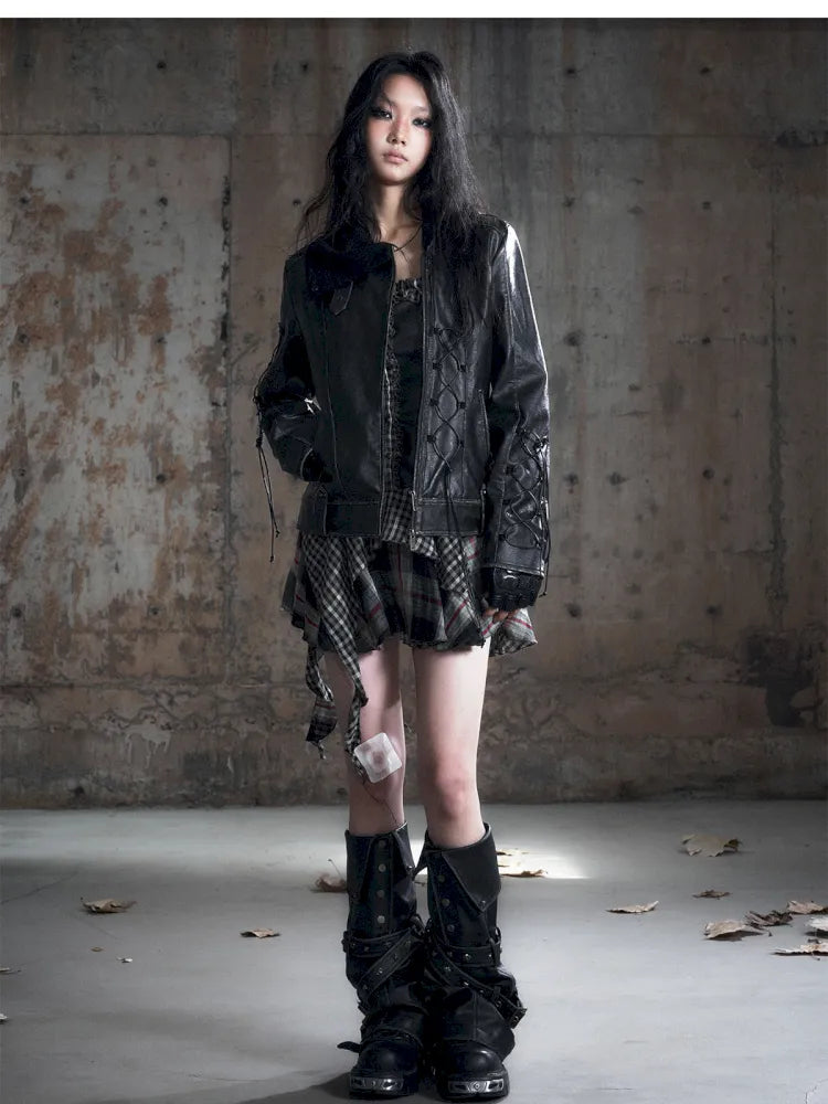 Strappy Slim-Fit Diagonal Zipper Coat【s0000013957】
