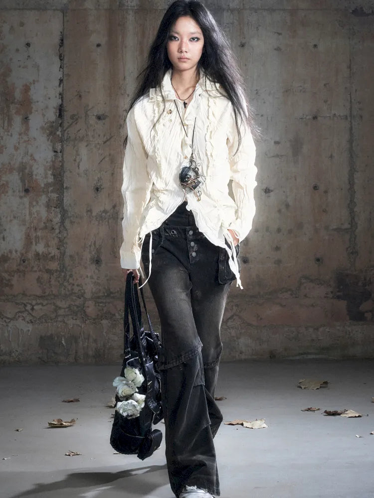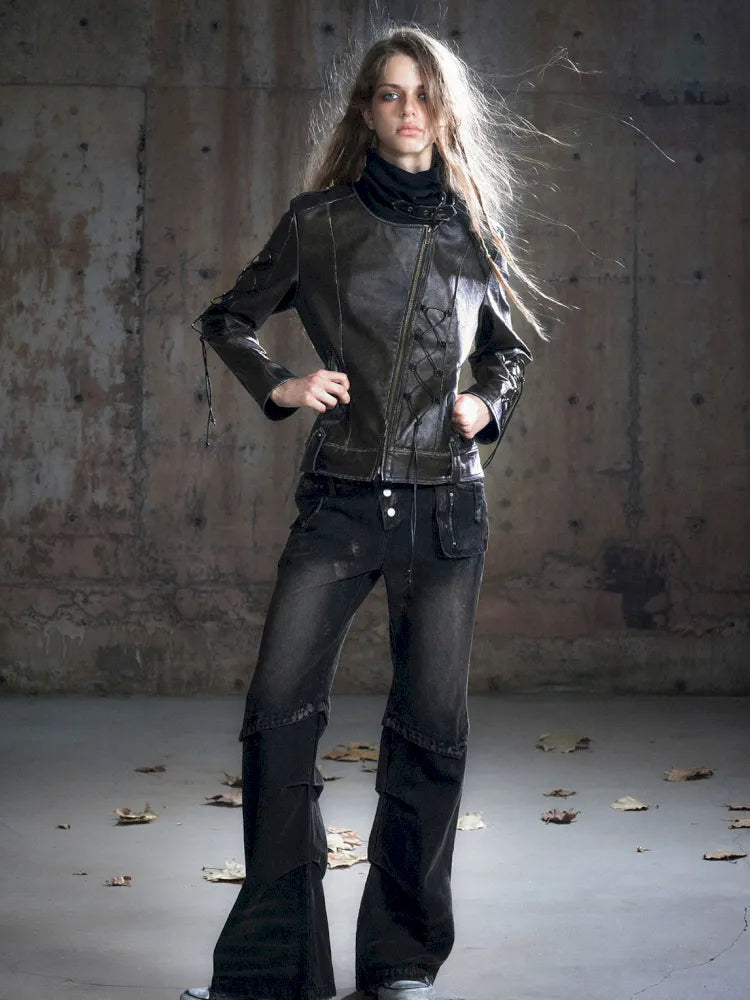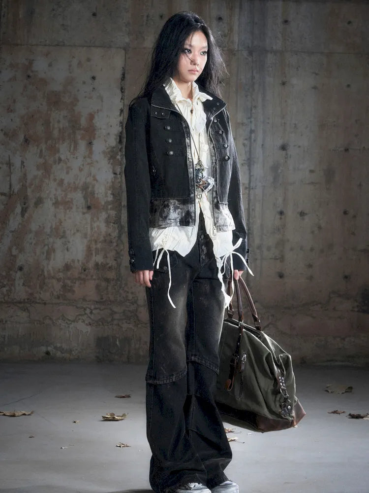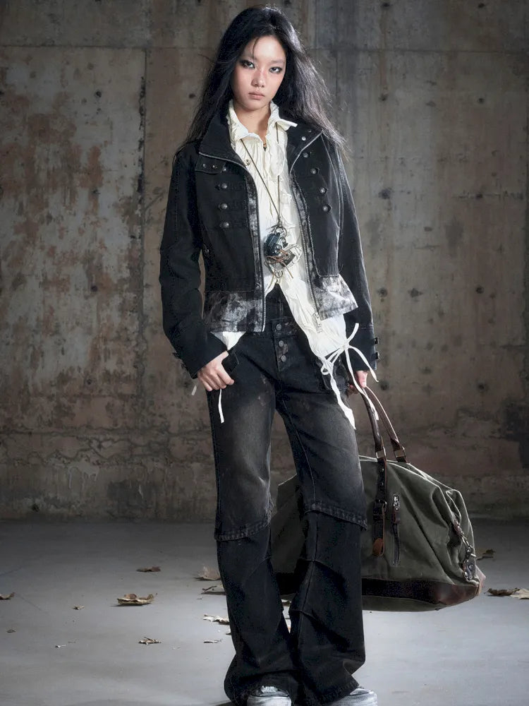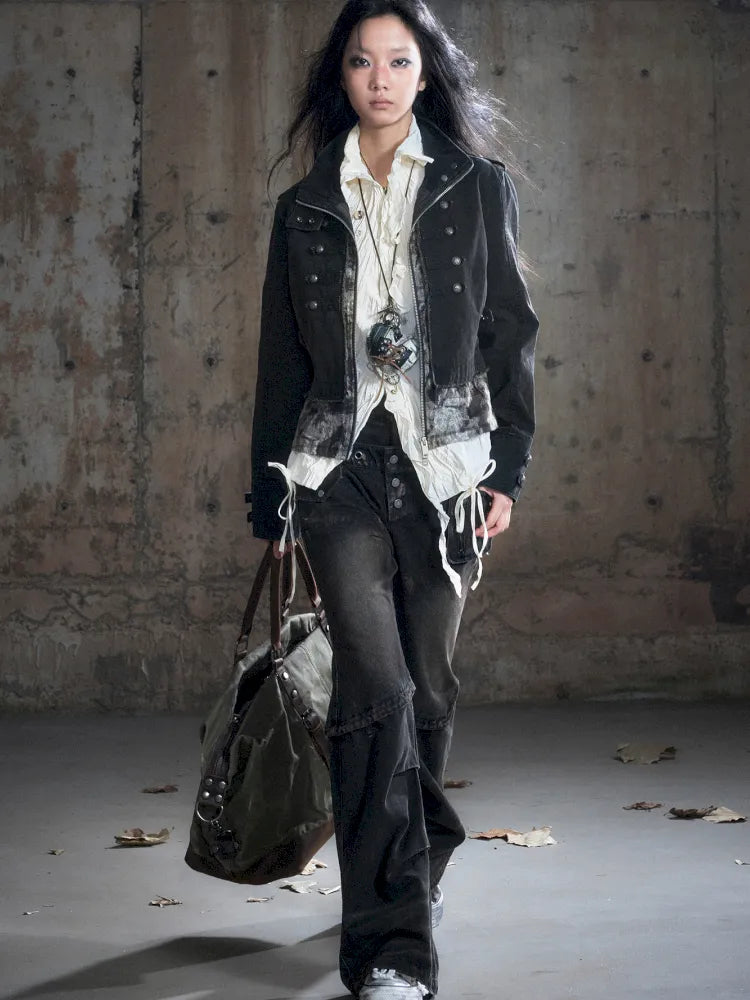 Patchwork Distressed Low-Rise Jeans【s0000013966】