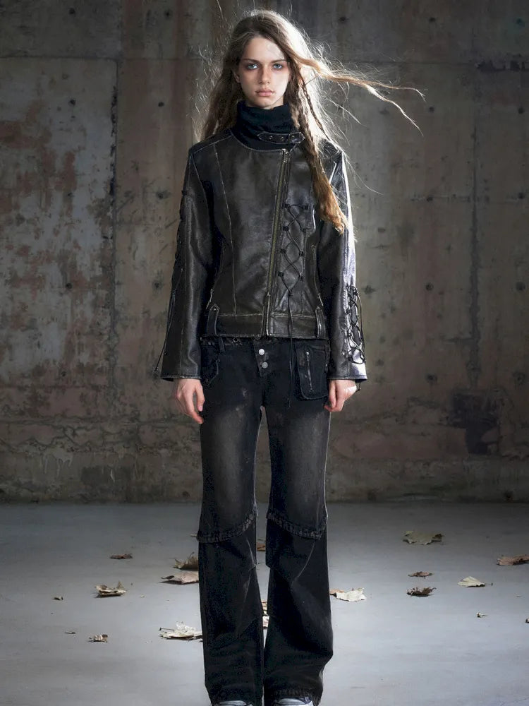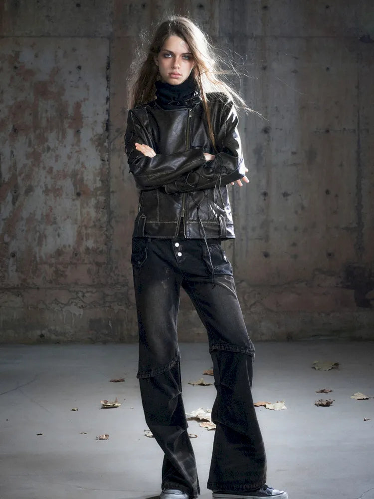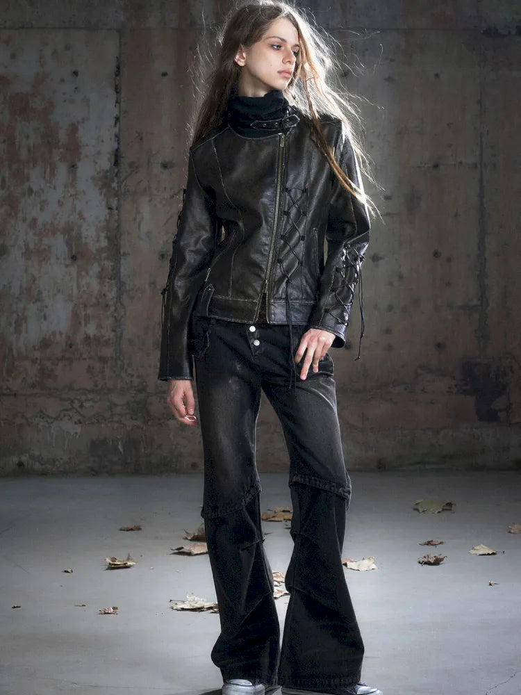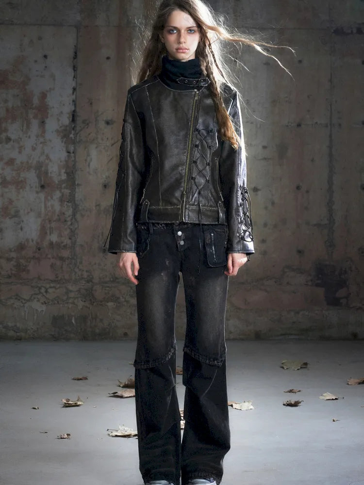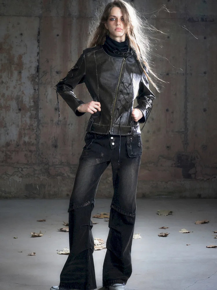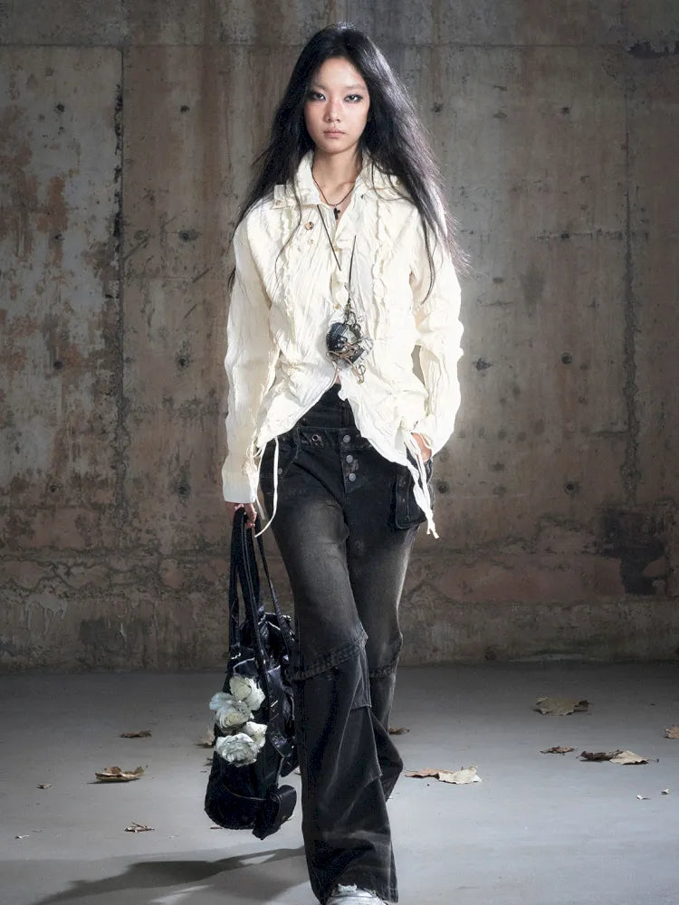 Patchwork Distressed Low-Rise Jeans【s0000013966】